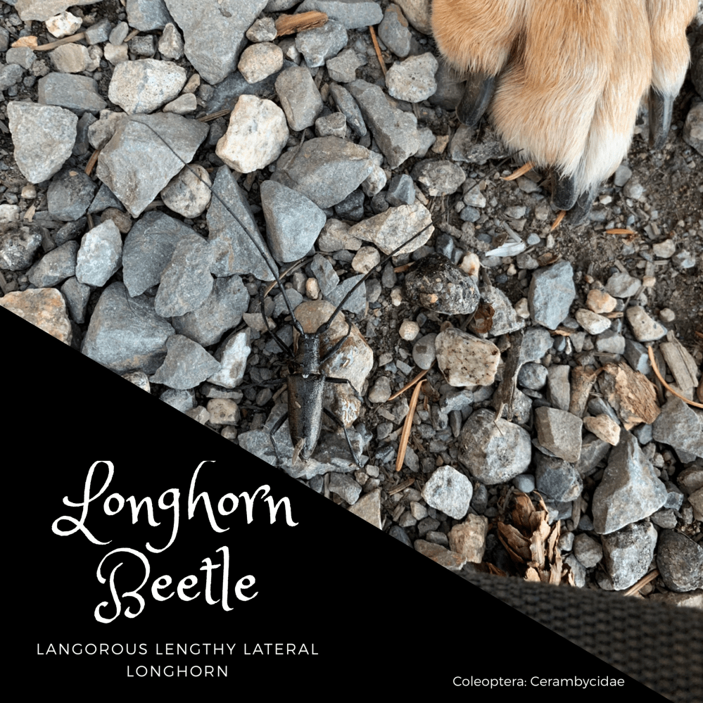 We have had quite a few new beetles in the yard this year. These two took a little digging to identify and I really only got as far as determining they are both types of longhorn beetles, aptly named due to their long antennas. Both are very different and uniquely interesting. The top one (black) was quite large, approx the length of my pinky finger (not including the antenna), while the bottom one (green) was the length of my pinky finger nail (not including the antenna).