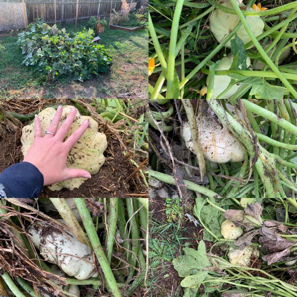 The Peter Pan plant was also getting powdery leaves, and it had taken on a jungle vibe. None of the Peter pans were harvested while we were away, resulting in dinner plate size squash all over. Although you can eat them at that size, they aren’t that great of a texture once they reach it. It didn’t look like it was going to produce much more due to the early fall-like temperatures so we decided to pull it for the year. I managed to get a few smaller sized ones to end the season with.