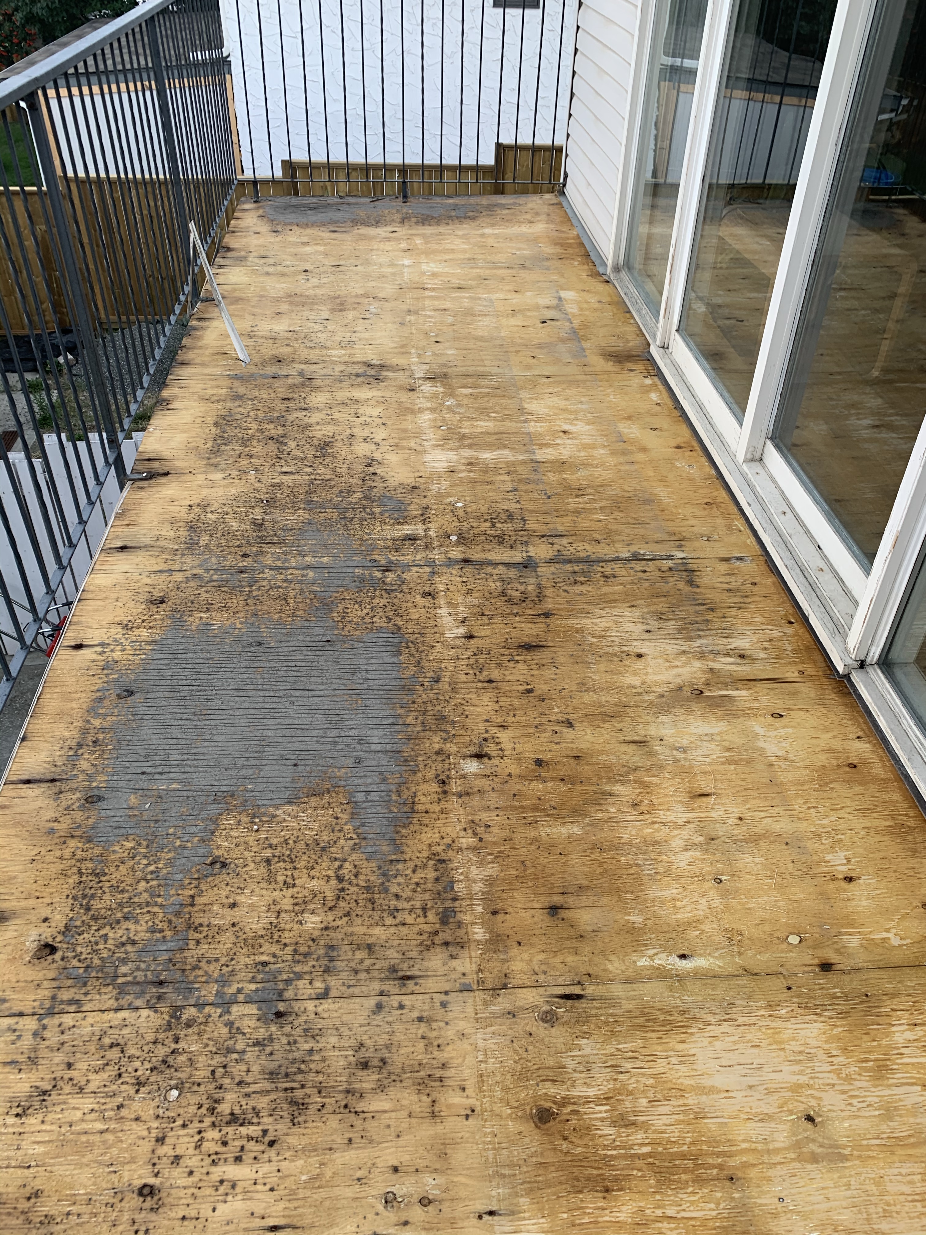 First thing I noticed was that there seemed to be two layers of plywood. The top plywood was in decent condition, so I was, at first, a little confused as to why the deck had been so spongy. It took me about an hour to get the first board up. The first board is always the worst. That is when I realized that the previous owners had taken a shortcut when they had last redone the deck. Instead of removing the old plywood like they should have, they just threw new plywood overtop. I was steaming, partly from my discovery and partly because I was being slowly baked by the sun.