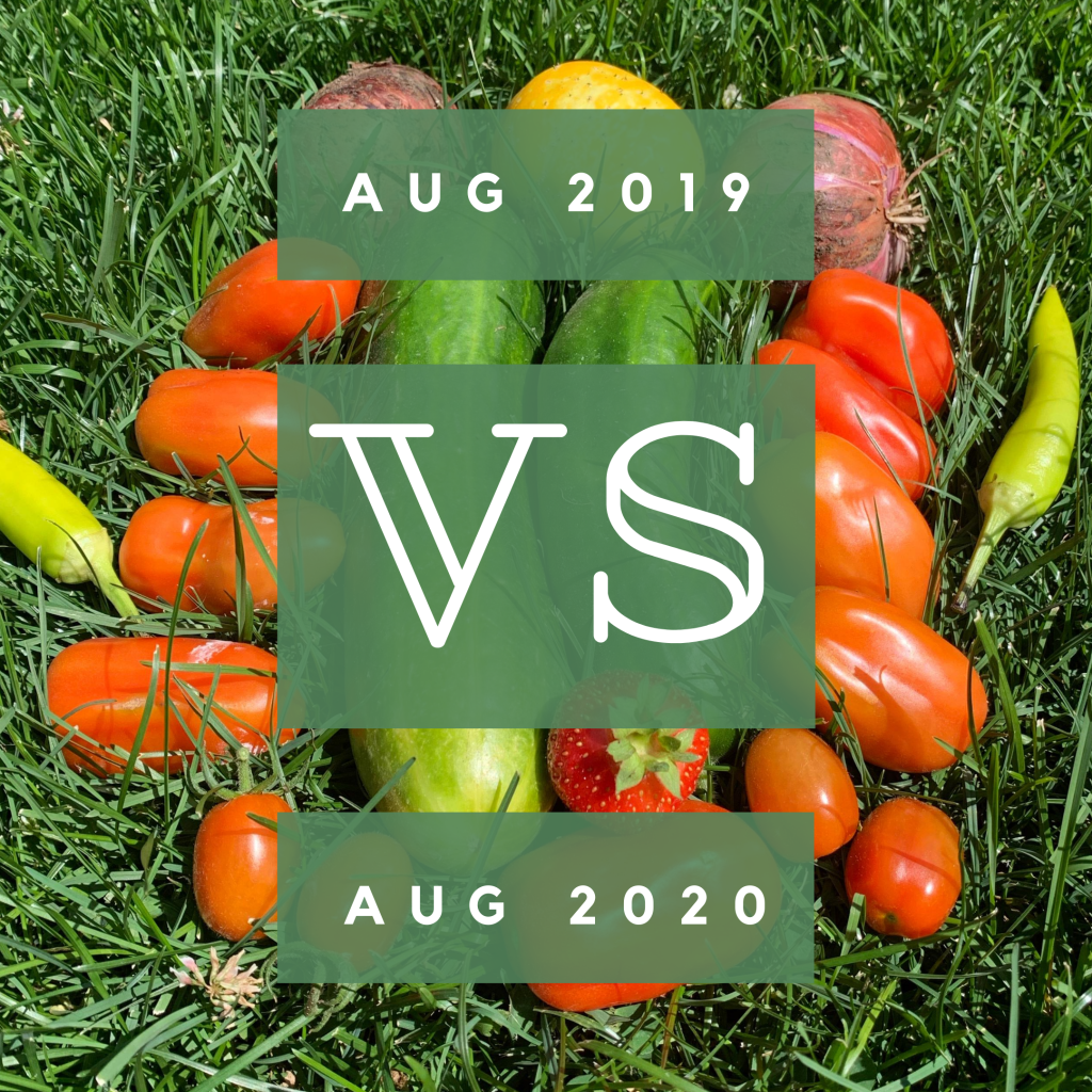 Our herbs numbers are a bit deceiving. Last year we harvested a lot of our herbs in August because they had gotten wild and had gone to seed while we were on our vacation to Newfoundland. This year, we have been tending them through all of August so they haven’t been able to go to seed and are still growing and producing a good harvest. I anticipate my numbers being higher in the September comparison since I am likely going to harvest most of the herbs later this month. I will also likely be making soups and sauces to can and freeze later this month, so I need the herbs to hold on until then.