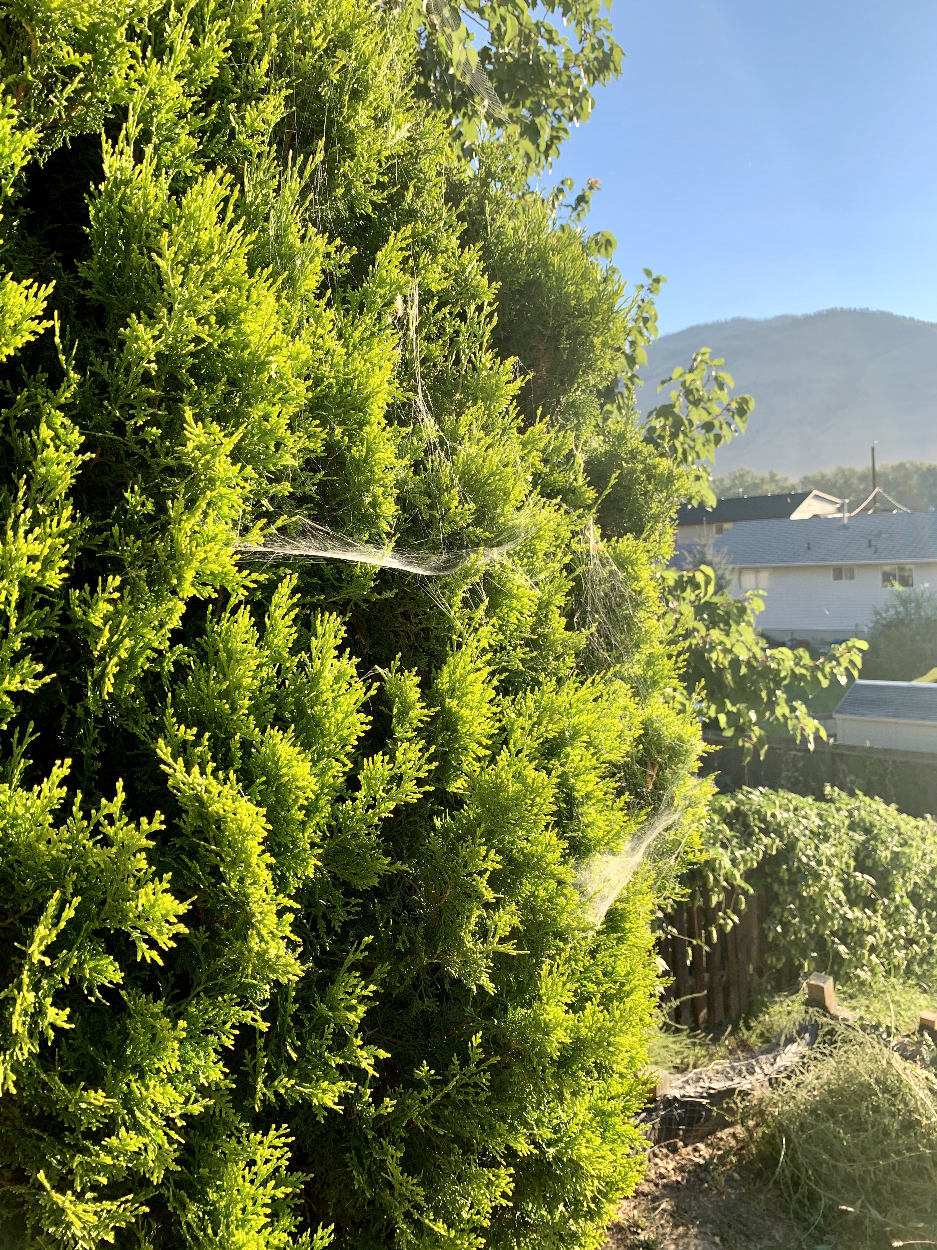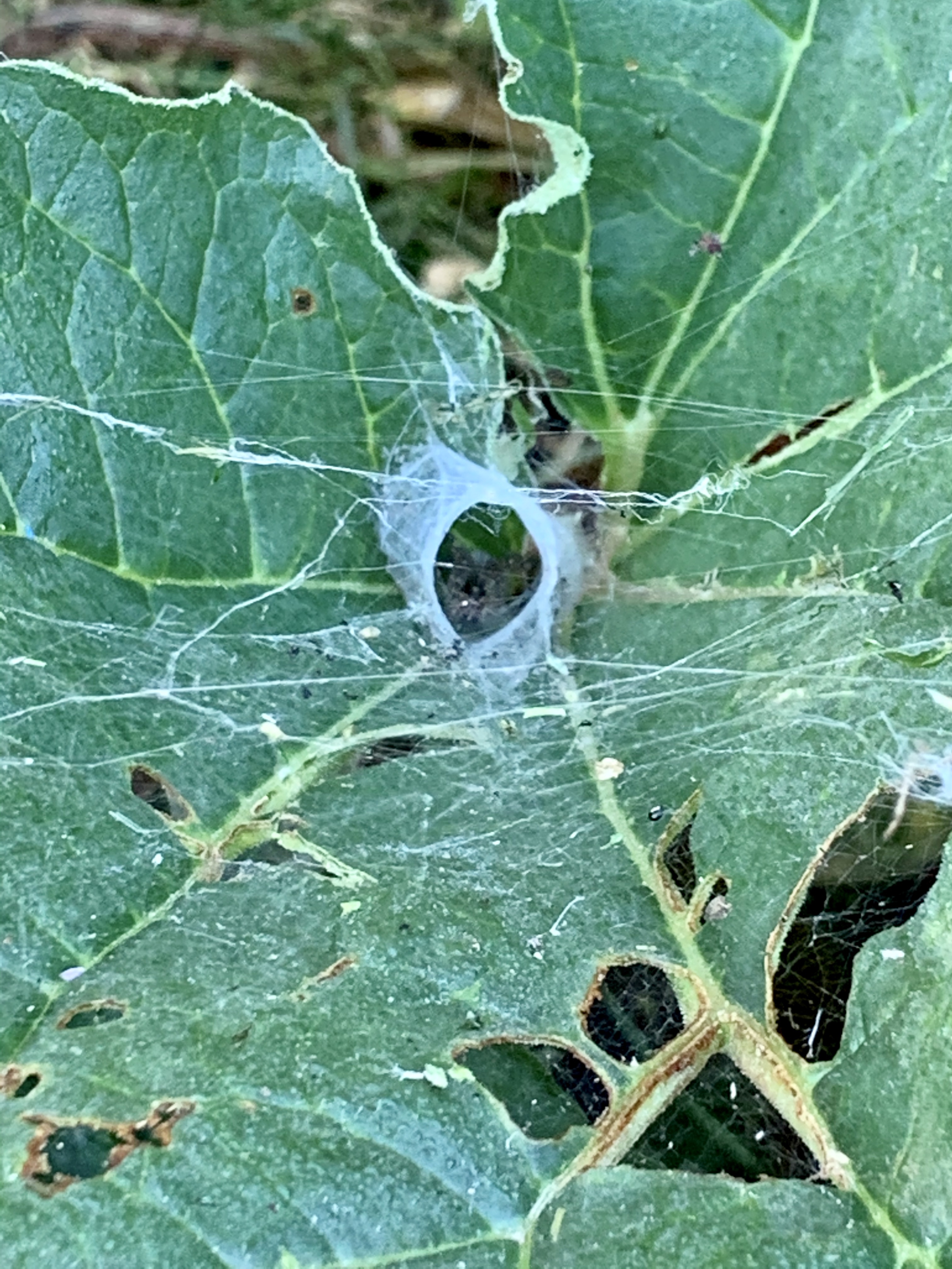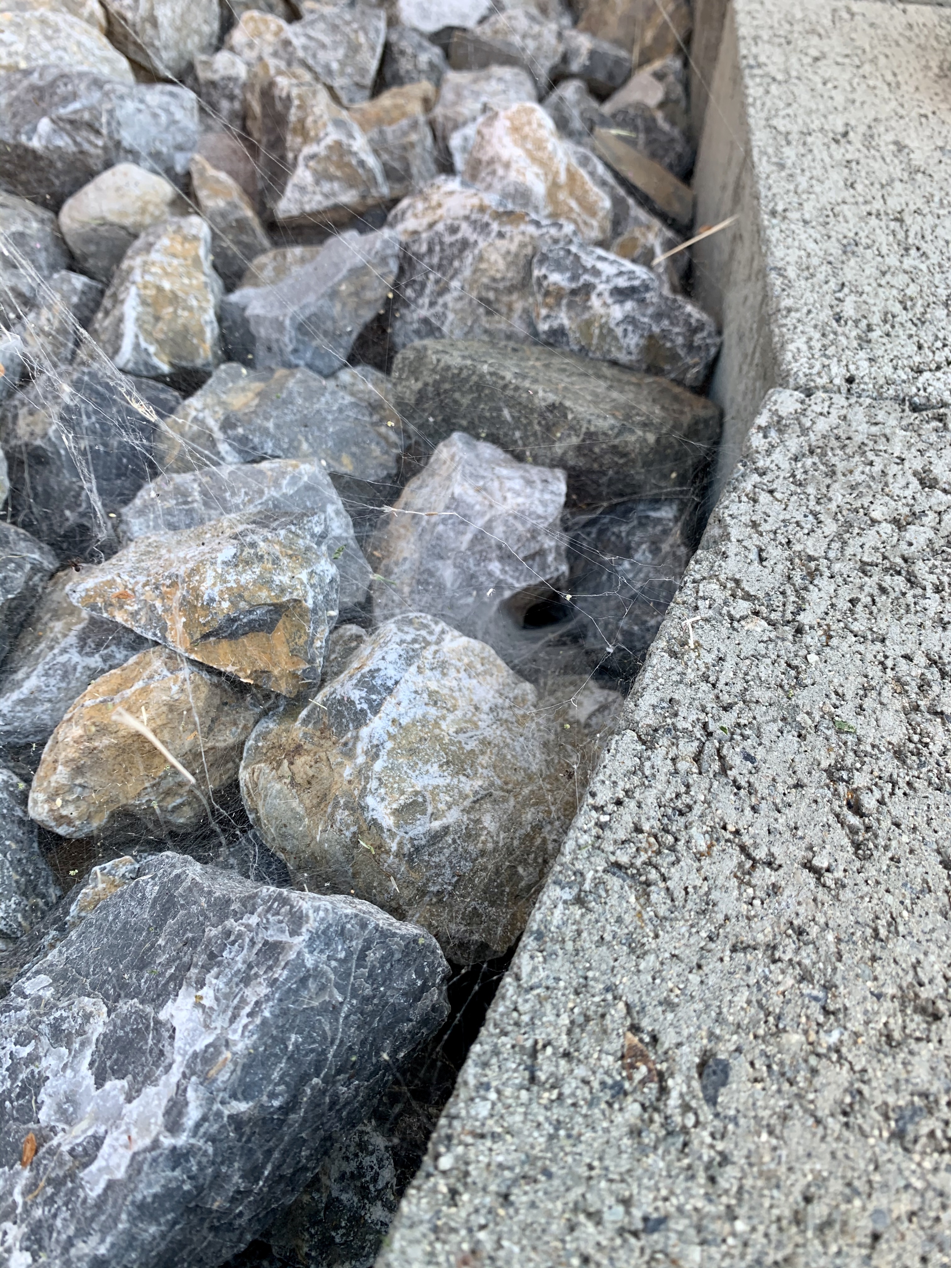 Although we usually have a healthy spider population throughout the summer, this year it is out of control. As someone who doesn’t particularly like spiders, walking into our backyard sometimes feels like walking into a scene from arachnophobia. All of our cedar trees glisten in the sun, looking like a deluxe high rise for spider nests. All of our plants are thoroughly infested with large, overgrown leaves becoming the perfect rolled-up home for spiders. Our rhubarb is the absolute worst. To harvest our food, I have to prepare myself for a battle royale. On top of that, our rock gardens have also become the spiders suburban homes with nest after nest tucked in next to each other.