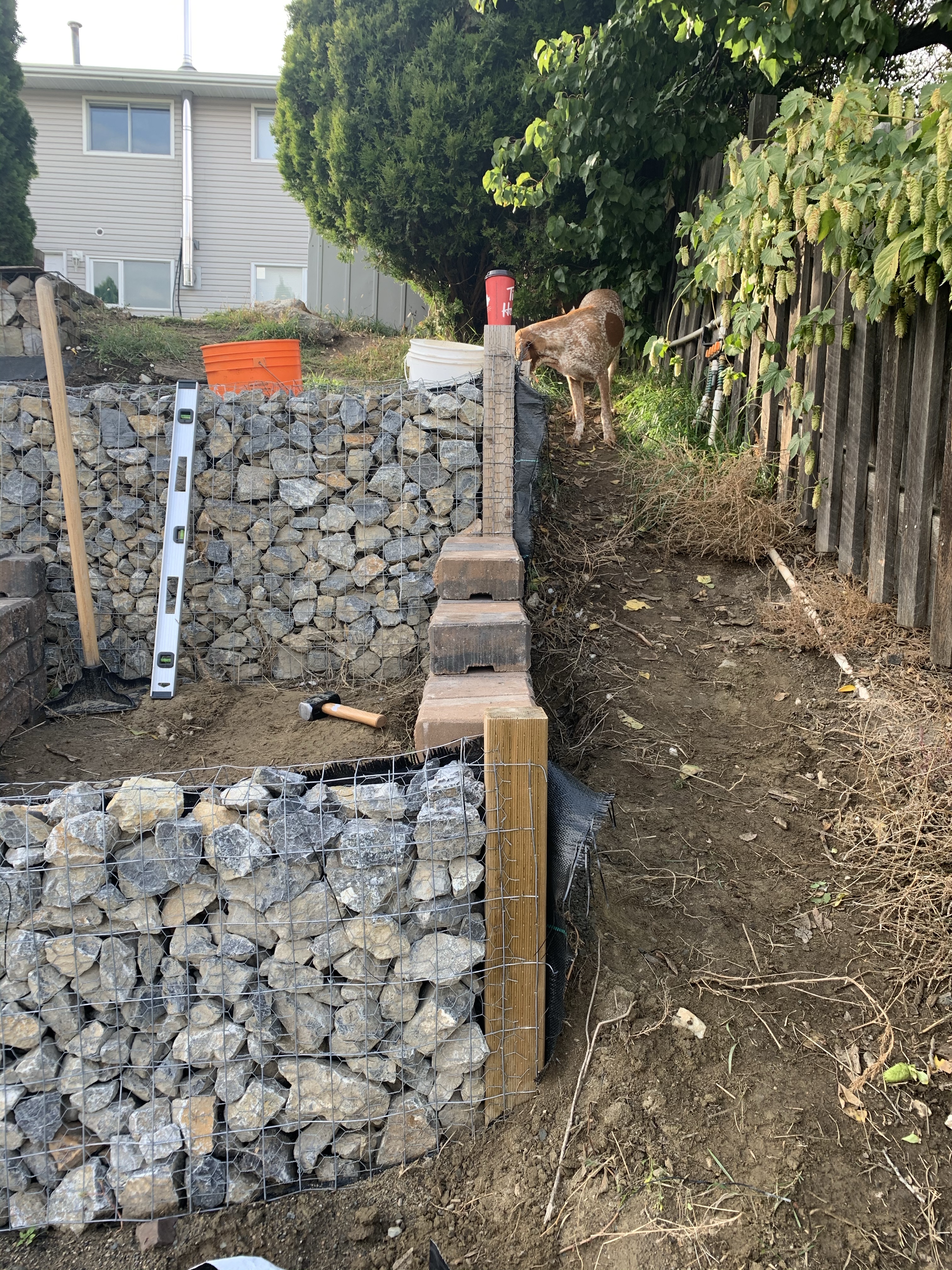 We need the walls to cap the ends so that we can add a foot or so of top soil. Without those walls, we can’t add the soil and we can’t grow our garden. So I convinced K to do one more project with me. I wanted to cap the left side of the beds. Unfortunately the right side will have to wait until spring because we still need to take out the tree trunk and may need to extend the walls further, but getting at least the left walls done means we can add topsoil to almost the entire bed. Even if we don’t get the right side done in early spring, at least we can put soil on most of the bed starting from the left.