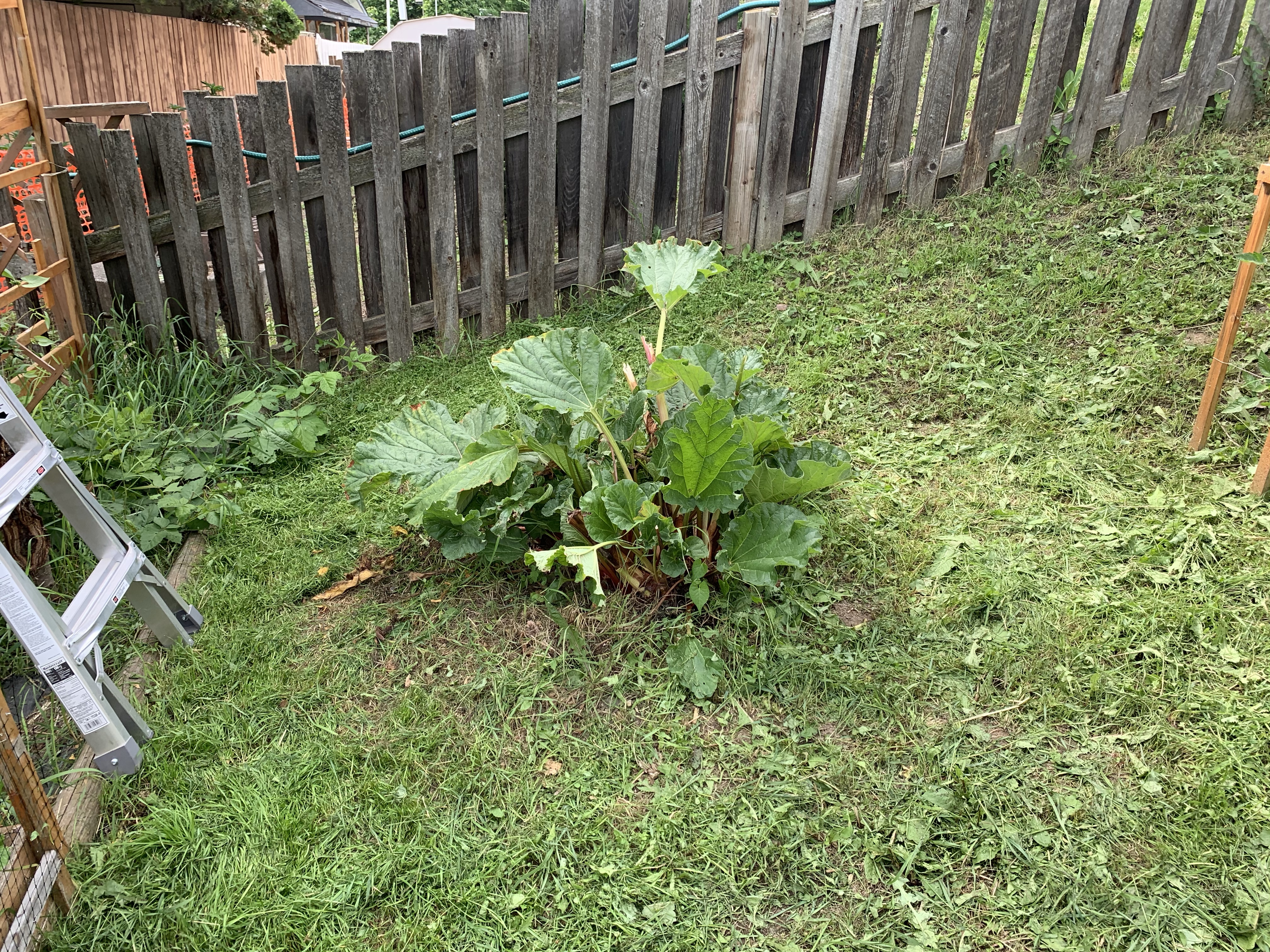 Our impromptu rhubarb plant that was given to us from our neighbour did good for its first season. It didn’t wilt after transplanting and provided us with a few harvests throughout the summer. The only challenge in the future will be trying to keep the spider population down. Those leaves seem to be ideal locations for wolf spider nests, making it difficult to want to harvest it.