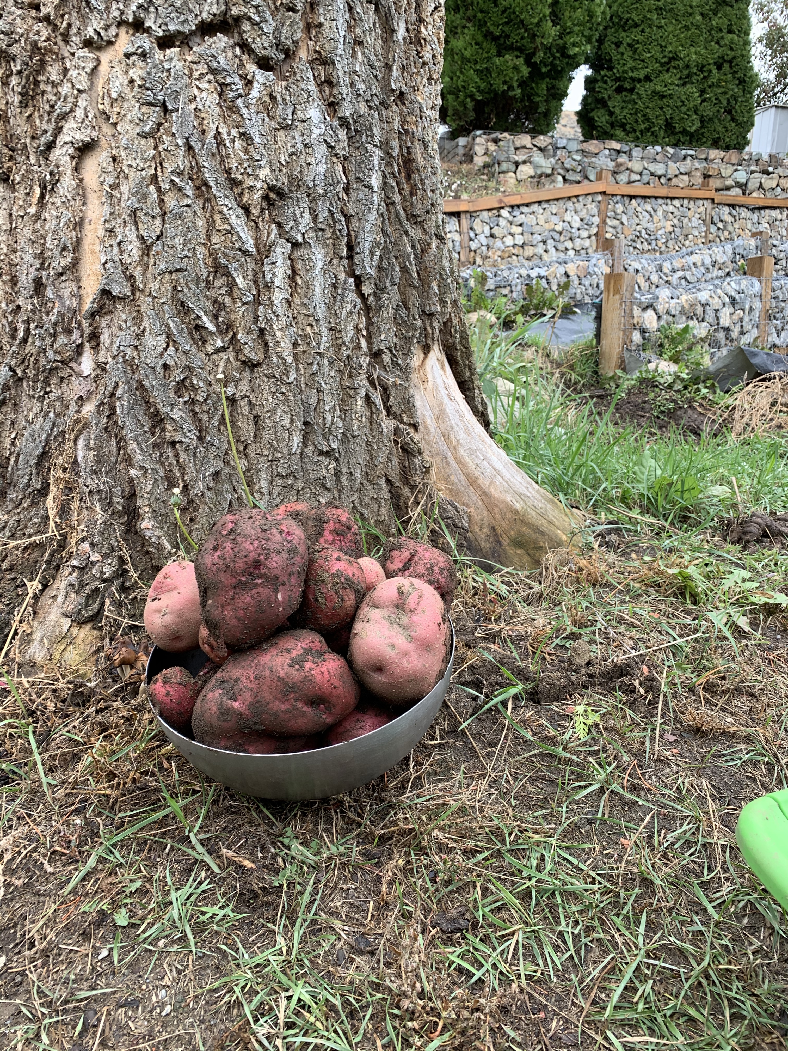 Our potato growing skills continue to improve. We managed to get a big haul of potatoes again this year with average sizes being larger and more consistent than previous years. Our straw to soil ratio seems to be working well, however we once again had all the potatoes mainly in one section of the towers. The goal for next year will be to have potatoes throughout the entire tower. I may also start doing 3 different varieties of potatoes, one variety for each of our three towers. K would like some russet potatoes and I would like to add sweet potato. Hopefully we get our shop built and have a cold storage built for our root vegetables. It would be nice to have them available for the winter.