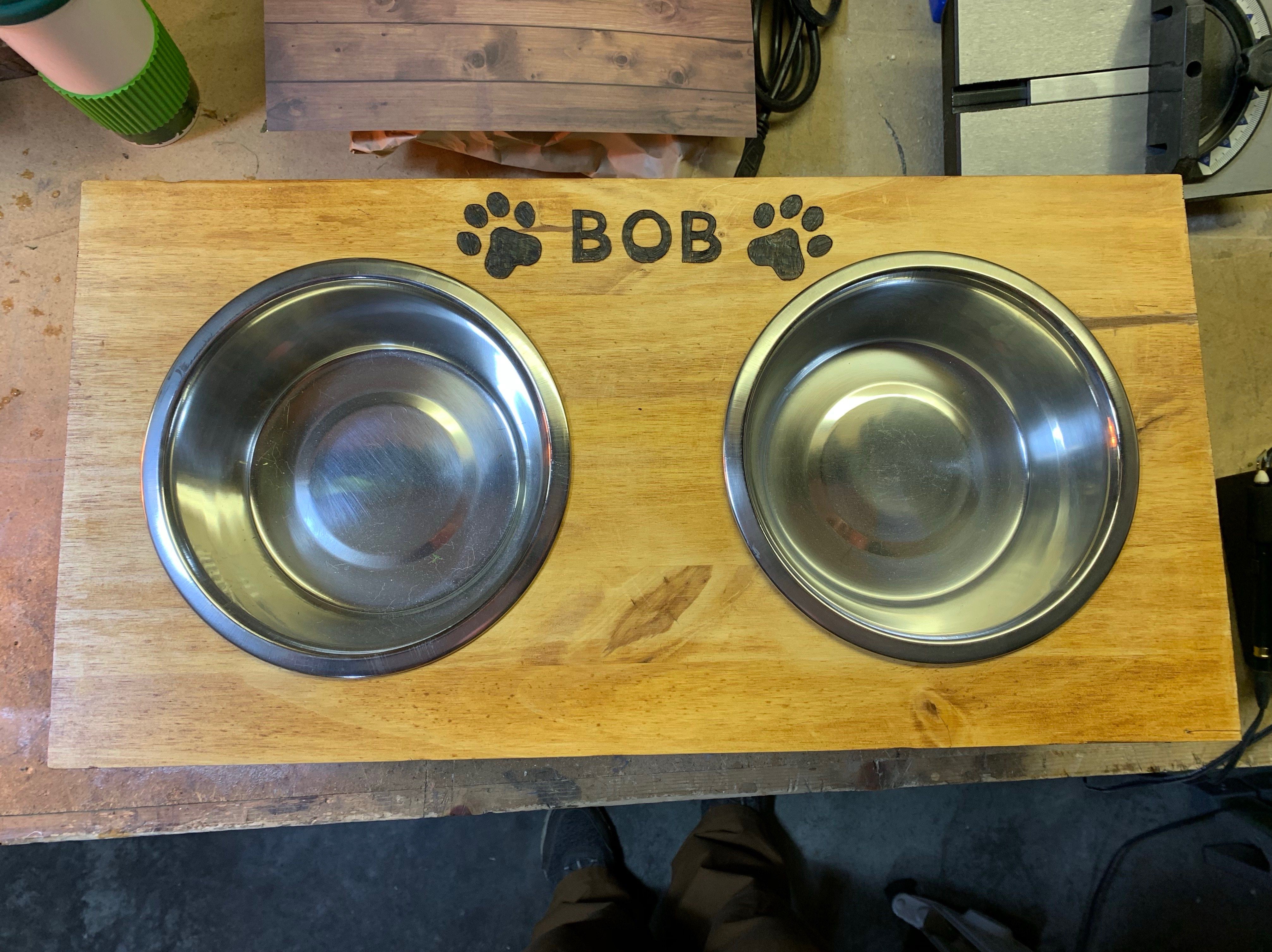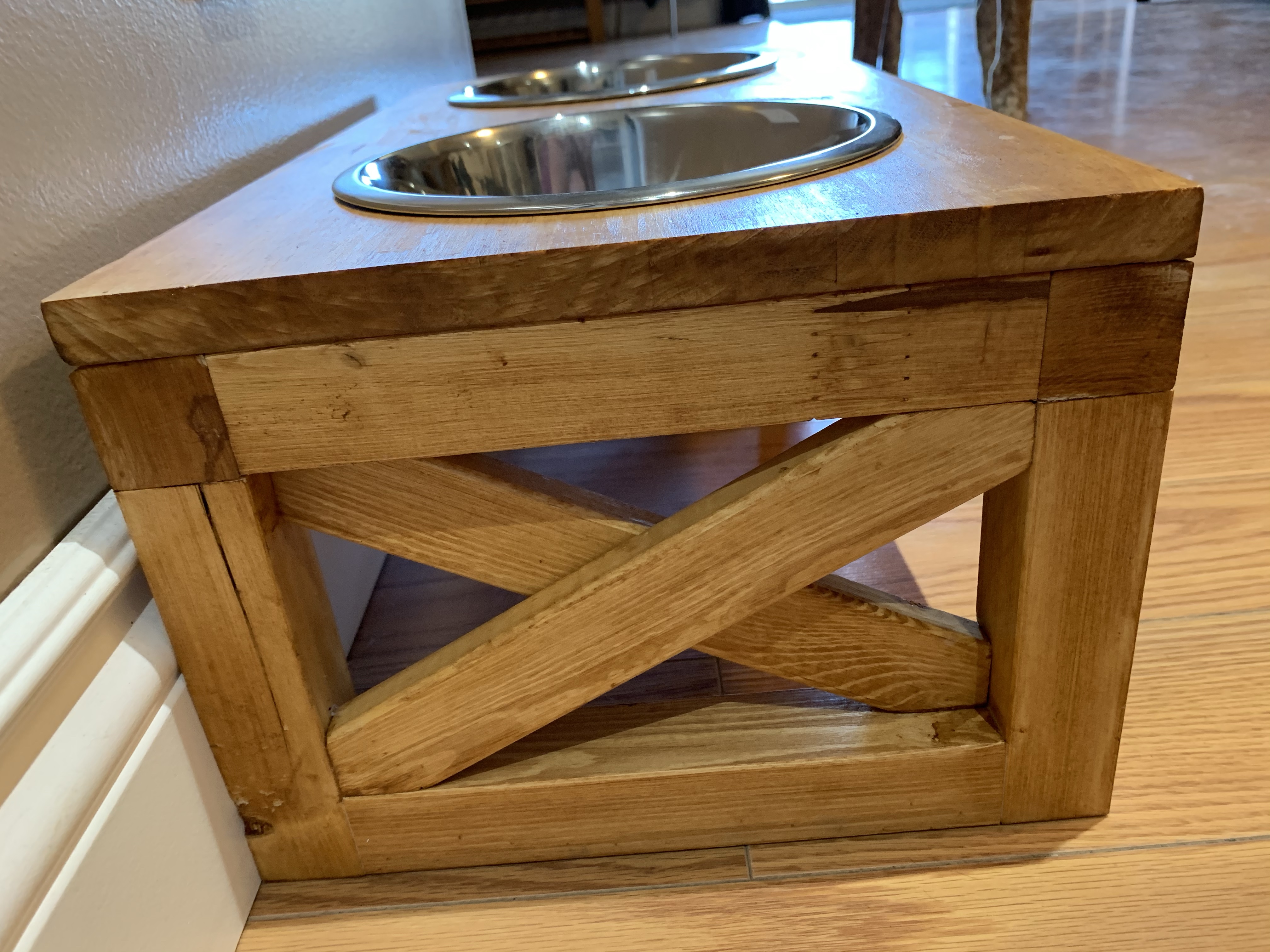 I worked on another dog bowl stand for our friends who help us stock up on wood for the winter. I thought it would make a good thank-you gift for them and their dog. Bob is getting a little older, so I thought it would be a good treat for him to have his bowls a little higher and easier to reach.