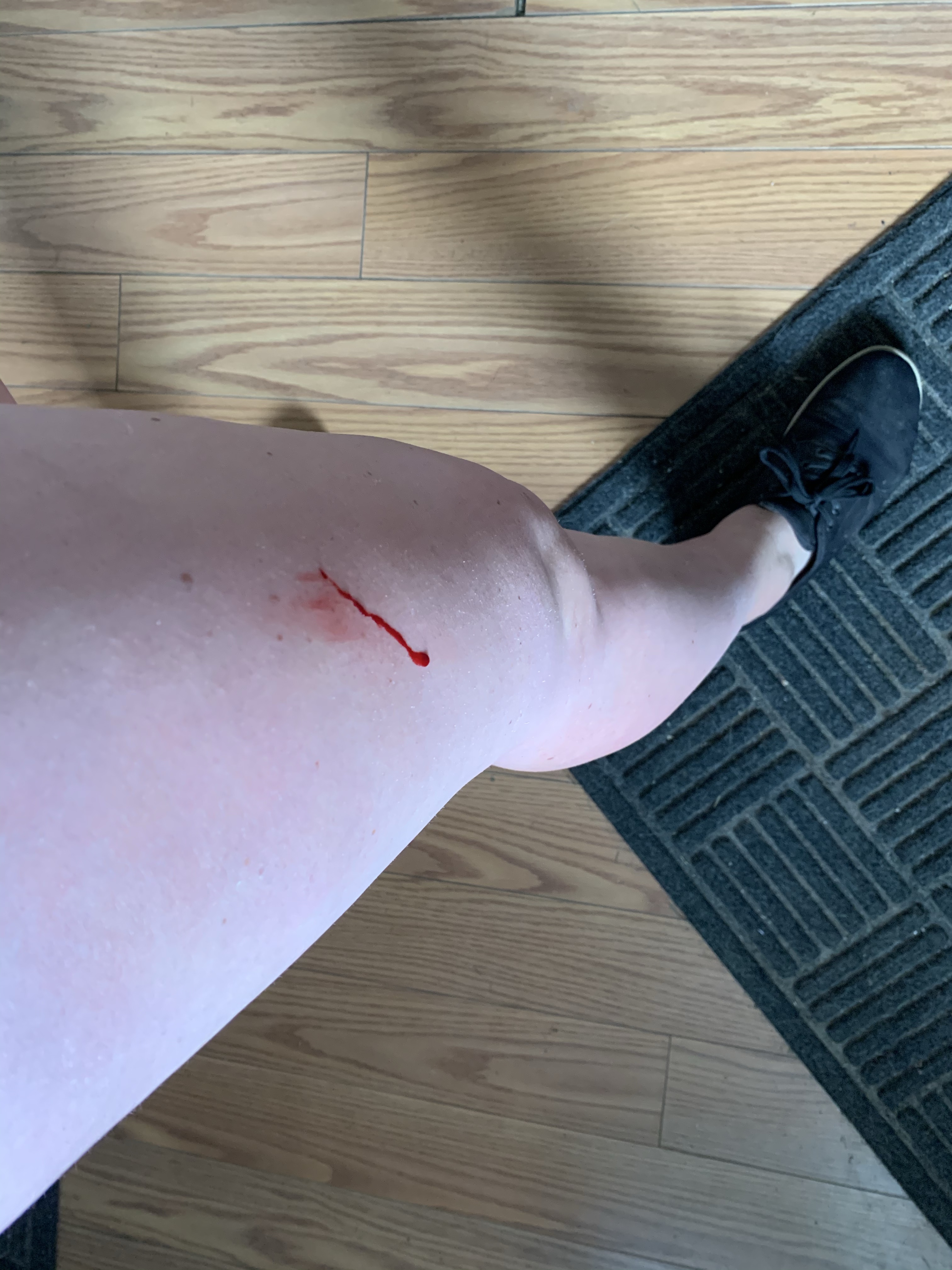 A few days later, I stupidly decided to take a short-cut and again stepped over a shorter section of fence. This time, my foot sunk into a soft sandy area, which resulted in what felt like the slowest fall ever. Not slow enough to avoid damage though, but slow enough that I didn’t feel the damage. I thought I had gotten away without any cuts because I had slowly fallen onto the razor sharp fence. The pressure was minor and nothing was stinging. So, I kept working. After a few minutes I felt it. A slow sting to start, then the wet dripping. I look down and my arm looked massacred and my leg was starting to look the same way. Into the house I went to clean-up, thinking that it would all be superficial and I would be back out working in no time. Nope. The leg wasn’t bad. Not scratches, but a few small pokes that were bleeding. They stopped fairly quickly and didn’t give me any trouble. But my arm was much worse. It was a deep cut that was bleeding pretty good. It was not deep enough to need stitches, but deep enough that it wouldn’t seal back together easily or quickly. It has resulted in a scar that I will have forever now.