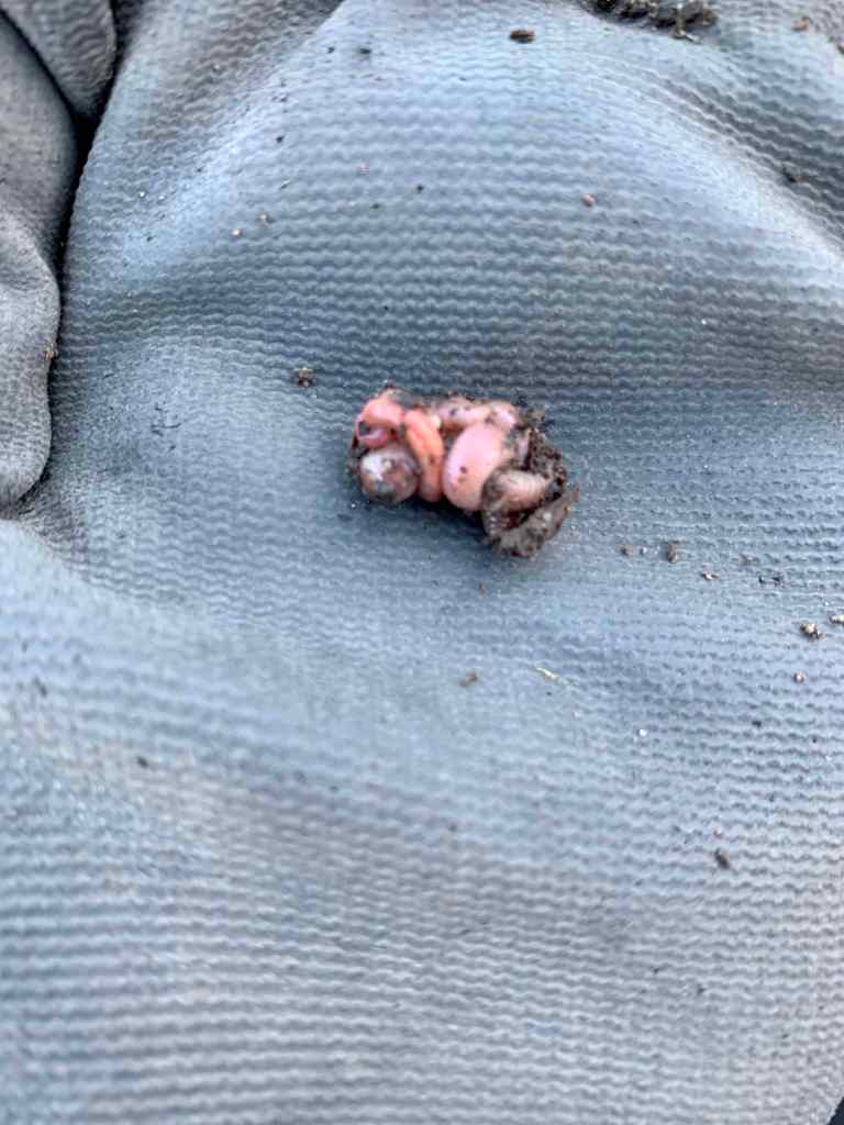 As we were digging, we didn’t see a lot of bug activity. It is still early in the season so it is not surprising. We did find a nice big beetle that had made a nice burrow under a piece of wood in the garden. As we got deeper, we started to find the abundance of worms that we always have in our garden bed. The odd thing, they were all tied up in knots. Of course, we had never thought of what happens to worms during the winter months, and now our interest was piqued. So we went to do a little research to learn more about what was going on in the garden.