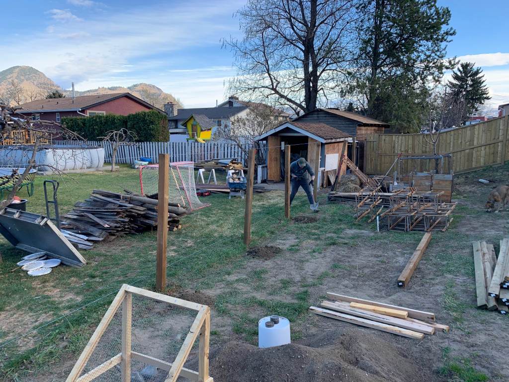 As we dug the holes, we put a post in so that no one would accidentally walk into one of the holes or injure themselves. It is easy to break an ankle if you aren’t paying attention. It also gives you a rough idea of how the fence will line-up before you start cementing. On the odd occasion, you may need to move your hole slightly one way or the other to line up properly. The string does a great job of showing the line, but the hole will sometimes still stray and need some adjustment.