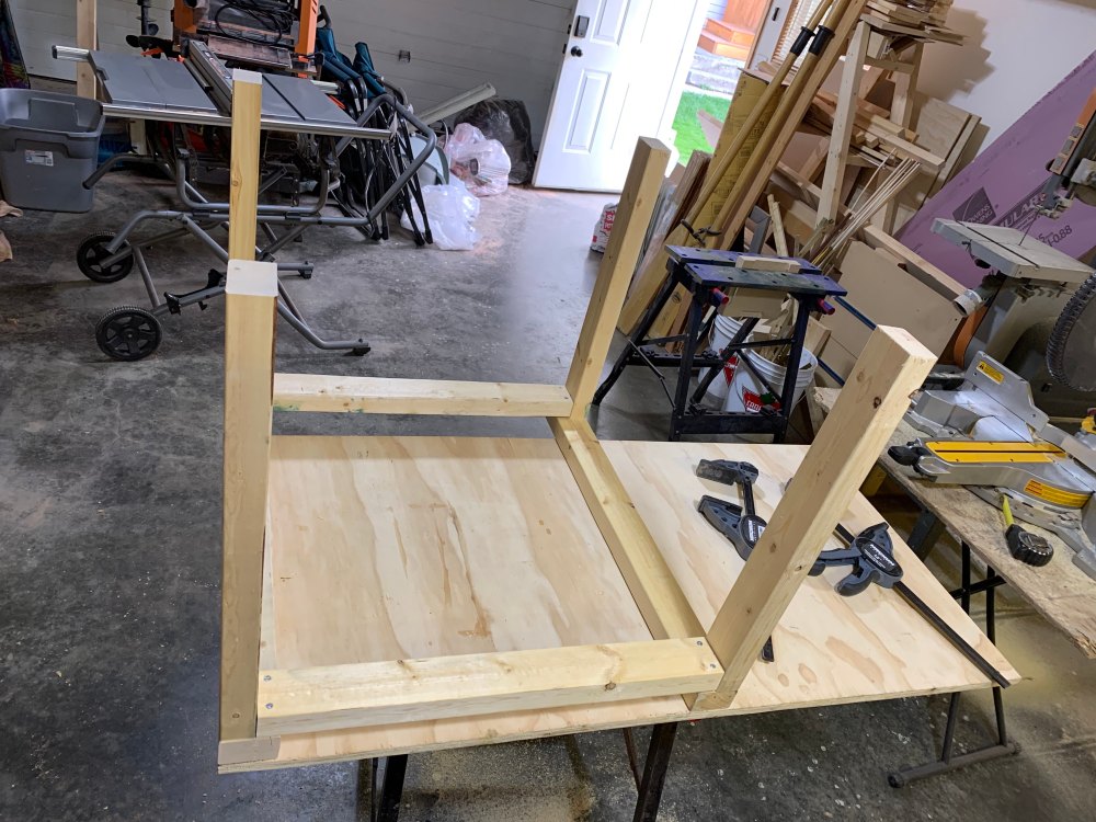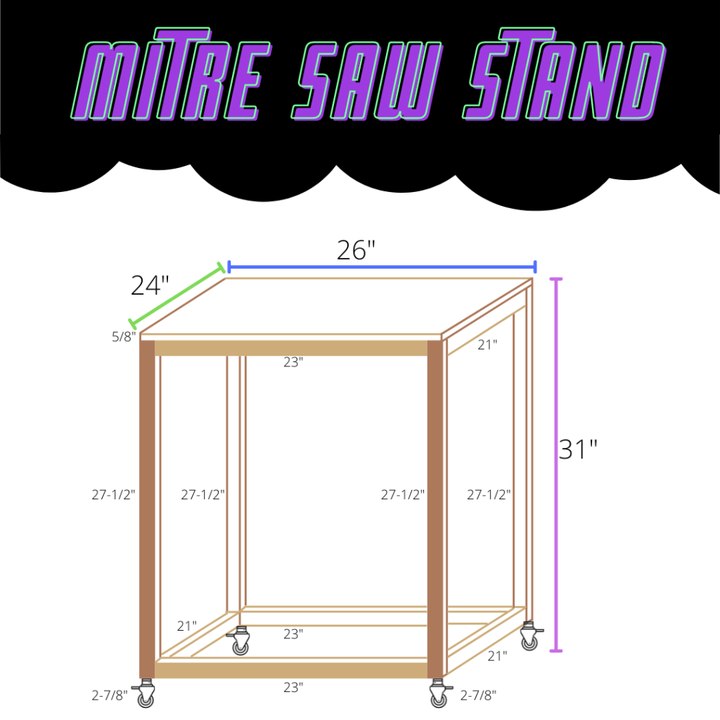 I am also going to preface this with the fact that I planned both these stands so that when working with the tool, the wood would be level with the top of my table saw. This allows me to use the table saw deck as extra workspace to help support the wood I am working with. My future benches will also match this height which was 34.5″.