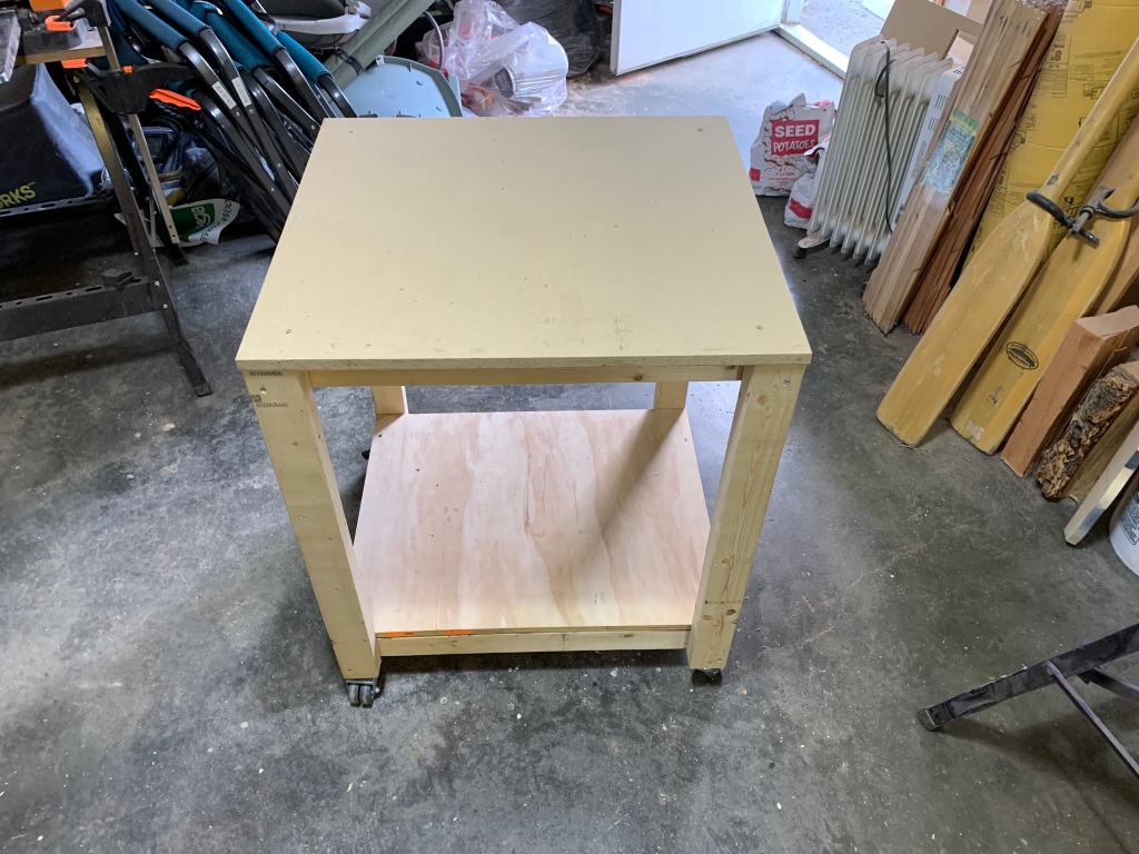 Well, the boat is officially in the shop, and it isn’t as big as I remember. Or rather, it isn’t taking up as much space as I thought it would, leaving me with a good size open area to work. That being said, the stands that I built for a few of my tools are already worth their weight in gold! Here are the plans that I used for some simple tool stands on casters. You can use them to build your own with easy adjustments to the sizing to fit your needs.