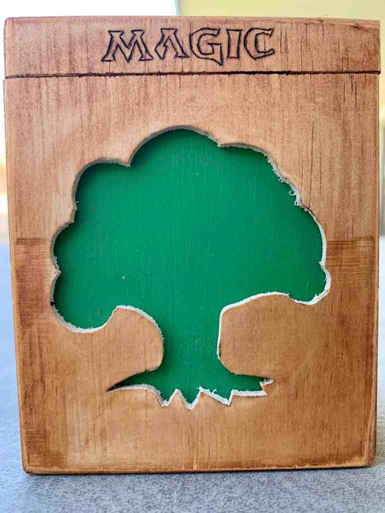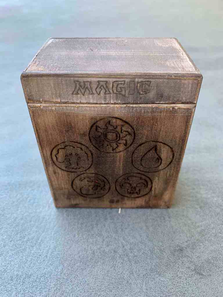 I am always looking for some new woodworking projects to do in the shop. My brother-in-law asked me a few months ago to make a deck box for his Magic The Gathering cards, providing me with a sample box for dimensions as well as some of the cards for the graphics. I feel that I am getting quite good at smaller boxes because of all the advent calendars and the small boxes that need to go in those. These obviously, were going to be quite different and I had to choose a style of box that I wanted to go with.