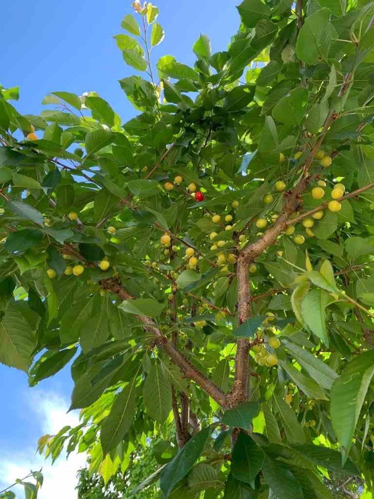 Our cherry tree is finally producing a good amount of fruit after 3 years of getting comfortable where we planted it. It is a little bittersweet seeing all the cherries this year and knowing that we have to either try to give the tree away (transplant it), or take it down all together. If you read one of my previous posts called “Landscaping Frustrations“, you will know that we had to put the cherry tree in because our neighbour bought too many trees and gave it to us…but we were still in the middle of designing our landscaping and it is now in a place where we plan to put a gazebo, and our trees will now go along the back fence. Oye. But, we have been getting while the getting is good.