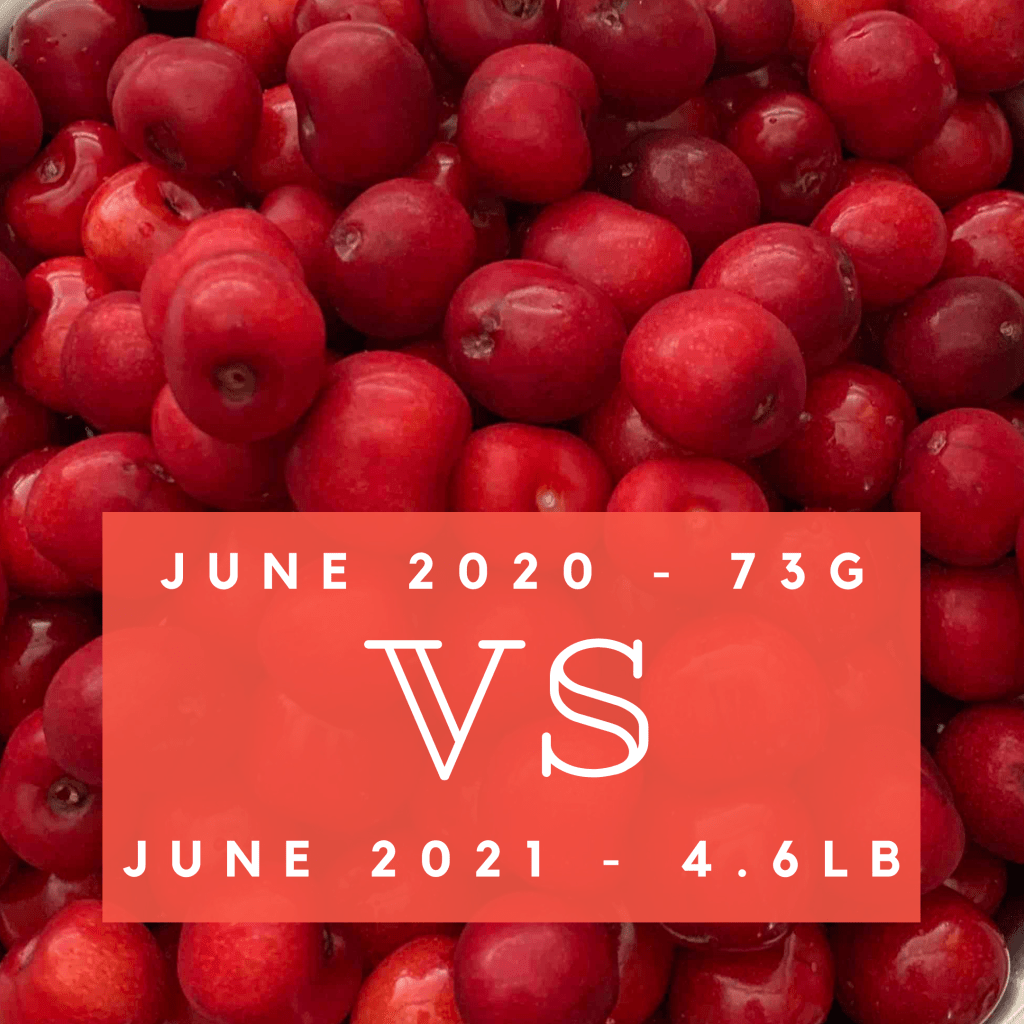 This is a bit of a cheater comparison considering we didn’t receive the rhubarb plant from our neighbours until July. I imagine that they had a good harvest off it last June before giving it to us due to having too many rhubarb plants to deal with. Either way, it is very cool that we got almost 10 lbs off the plant in June, with new shoots coming up for July harvest. We did leave some of the stalks on to help shelter the new stalks during the crazy heatwave. They will likely be a little woody, but I will just stew them down for on ice cream or in smoothies. I may also make some more strawberry-rhubarb fruit leather. I love the dehydrator that my sister gave me for Christmas. So many more goodies will be made from the garden.