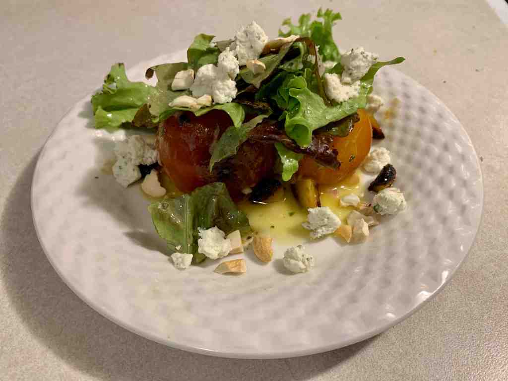This salad ended up as tasty as I had hoped. I love beets, especially the golden beets that we have grown this year, so I knew that I had to try to recreate this salad from Claudio Aprile’s Origin restaurant. The only item I missed was some pickled onion, but I threw in some roasted garlic. I am definitely going to have to try some pickled onion at least one of the times that I make this salad. Now I feel that I need to go to one of is Origin restaurants and hope that this item is still on the menu so that I can taste what his is like, since I am basing mine solely on description and photos.