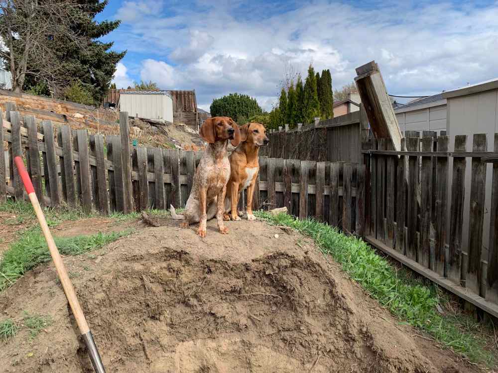 Add to the mix, our two dogs, Ellie & Basil, and now you have a really fun time in the yard. Both are hounds, and complete opposites of one another. Ellie, who is 11 year old, is quiet and constantly on the move. Basil, who is 2 years old, is loud, sassy and constantly sleeping when she is not howling. When we first got Ellie, we were in a rental that had no fenced yard, and just a small grassy area. She was quickly trained to stay in the non-fenced yard, and my life revolved around the demands for walks and hikes to make up for the lack of yard. When we got the new house, we were so excited for Ellie to be able to run and explore and enjoy a space that was more stimulating. We still do lots of walks and hikes, but now she also has a proper size yard to keep an eye on. With two dogs, part of our landscaping concerns is how to transition from areas that they have been able to free-roam to garden beds that now have plants and food growing in them. We got lucky, they figured it out quickly and we only had a few minor plant casualties in the spring before they learned the new pathways.