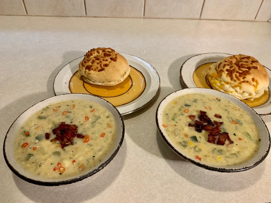 I was expecting a good soup with this recipe, but what we got was amazing. I was worried that the zucchini would water down the chowder, but that was not the case. Instead it infused more flavour into the chowder. Plus a lot of it held up, so while eating, you get to enjoy some delicious chunks of zucchini throughout.