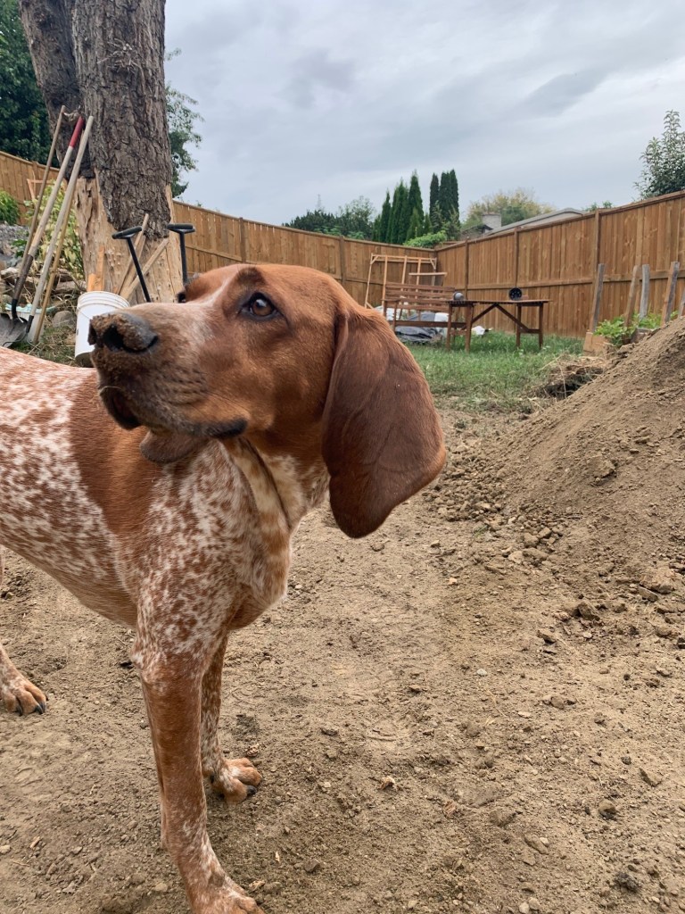 Basil was her usual helpful self during the entire digging process. She always makes sure that we are working hard and adaptable to working around her. She also thought that she should help in getting a few of the roots out for us, and proceeded to dig her own areas, which was definitely not helpful. Ellie on the other hand was happy to hunt grasshoppers or stalk the neighbours chickens from our side of the fence. Conveniently out of the way at all times.