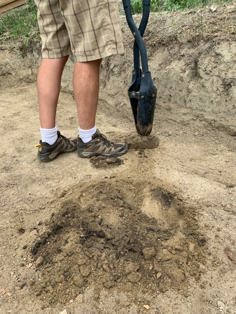 So we have started. Kurt got into excavator mode and taught me how he digs out these levels. I’m not nearly as good of a digger as he is, unless you want a deep hole that has no finesse to it, then I’m your girl. Kurt has a way of shaping the ground to be exactly what we need it to be. I have the vision of it, but for some reason cannot get my hands to maneuver the shovel the way they need to. Kurt is a patient teacher though and I think I am starting to get it.