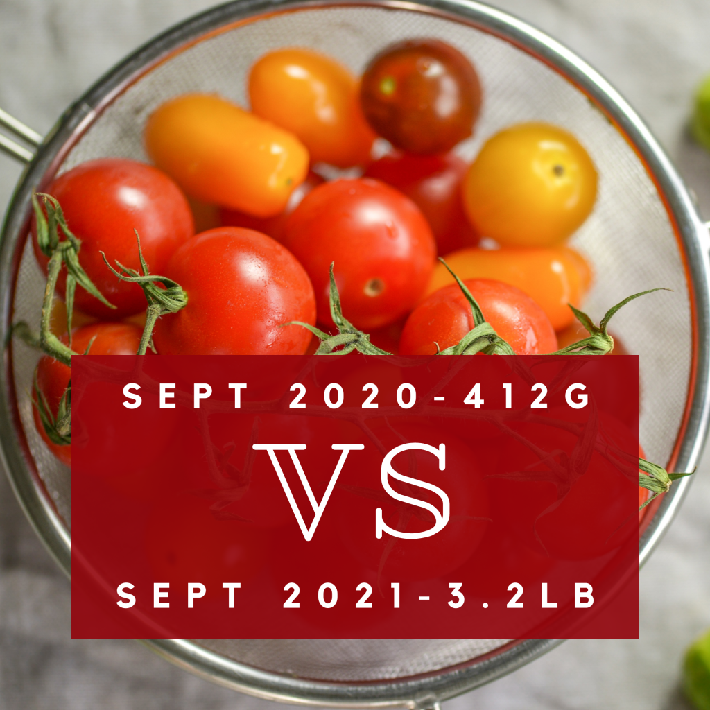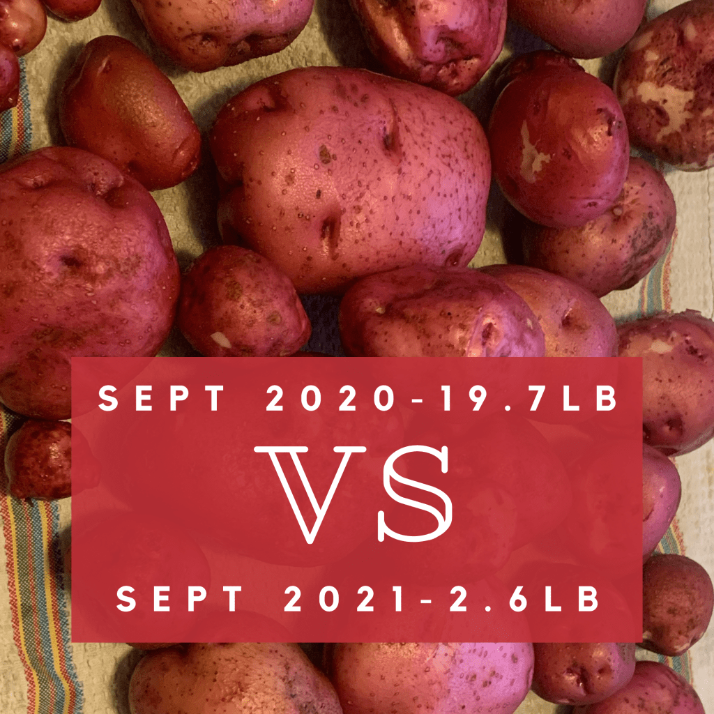 Our numbers for September this year are way lower than last year, but that is partly because we did not plant an entire garden bed of carrots. What compelled us to do that last year is beyond me, but the dogs enjoyed it. They got lots of carrots last year. This year, they will still enjoy some of what we have remaining, but it will be a more reasonable amount this year.