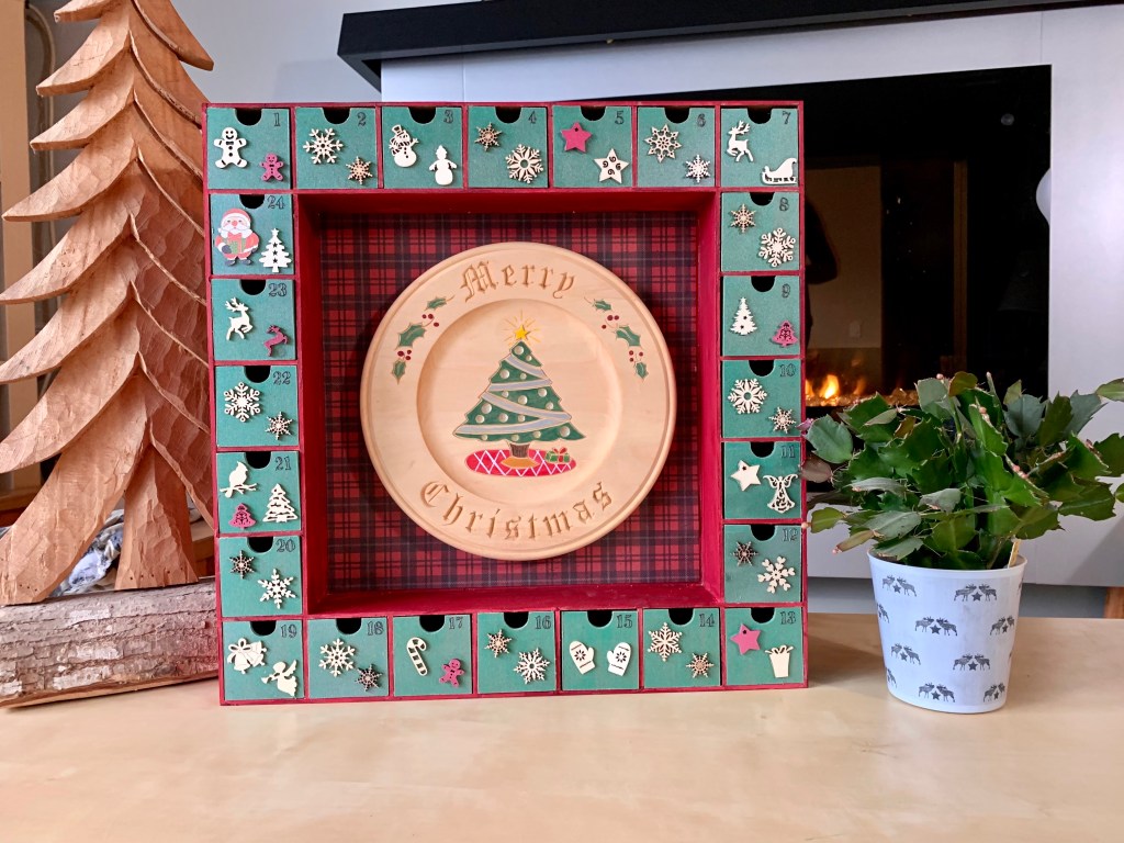 Once again, advent calendars are a big hit. My mother-in-law does a phenomenal job of adding so much whimsey and Christmas magic to the calendars that we always have such interest in them. We didn’t sell out last year, so she had only planned on making 6 this year. Within the first week of posting them, we had sold 4. Being more prepared this year, the posting went up earlier, so Janice decided to make a few more. She worked to decorate 3 more, so I prepared a few more frames. I feel like I almost have them down to a science now. Plus, having a table saw that cuts such perfectly square pieces also helps. For 1 box, I have to cut 129 pieces. I don’t have a CNC machines, so I actually cut every piece. I then sit and glue all the pieces together. The frames isn’t bad, but the 24 little boxes, have 5 pieces each that need to be glued. It takes a bit of time. Then it all needs to be painted before Janice can add her decoration. It is truly a labour of love, and a wonderful project for me to work on with my mother-in-law.
