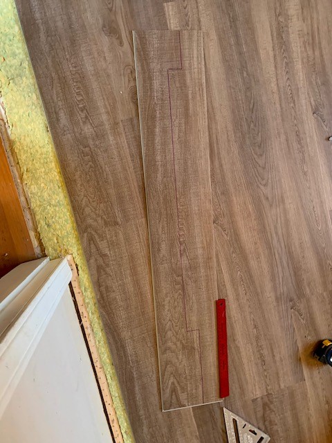 So now we had our excuse. Time to start spending some more money on the house. It is a good things we can’t travel right now! Priorities would have been a very difficult thing to manage if we could travel. Anyway, we started with the flooring. I knew that I didn’t want to try to match the laminate flooring that is in most of the rest of the upstairs portion of our house. It is a mixed colour laminate with different shades of brown and reddish brown. My office, across the hall from our bedroom, has a light brown laminate, but doesn’t match the main flooring, so why not do something different again. After staring at about a million options and price-points, I finally made a decision on a brown & grey mix colour vinyl plank flooring. I realized when I got home that it is very similar to what we did in the boot room, just a little lighter with a little more brown in it. Perfect!