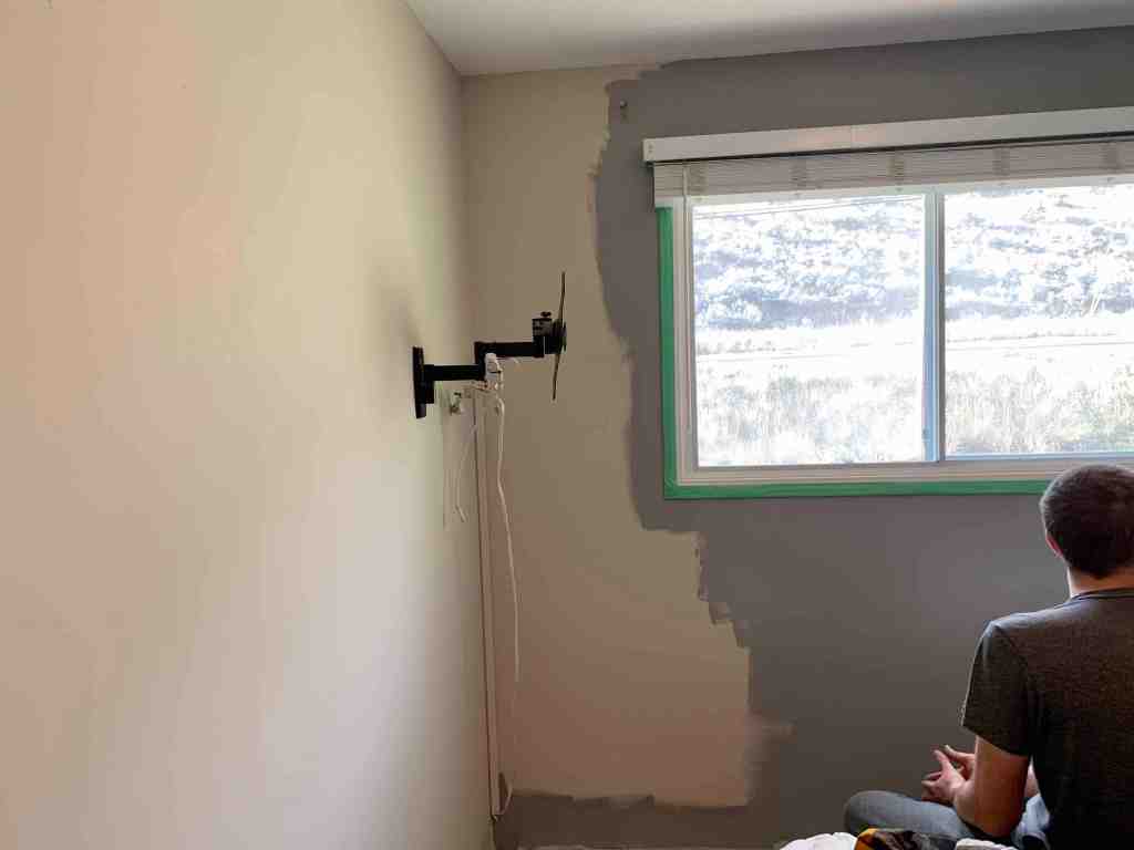 The next morning, we were up early thanks to the silly time change so we relaxed for a bit. A morning hot tub loosened up the muscles and got us ready for another day of work on the bedroom. Before we headed out to run some errands for paint and supplies, we washed the walls so that they had time to dry before we got home with the paint. If you look closely at our last blog’s photos, you can see that there were definitely marks on the walls, and stains. We hadn’t repainted in 8 years, so it was bound to happen.