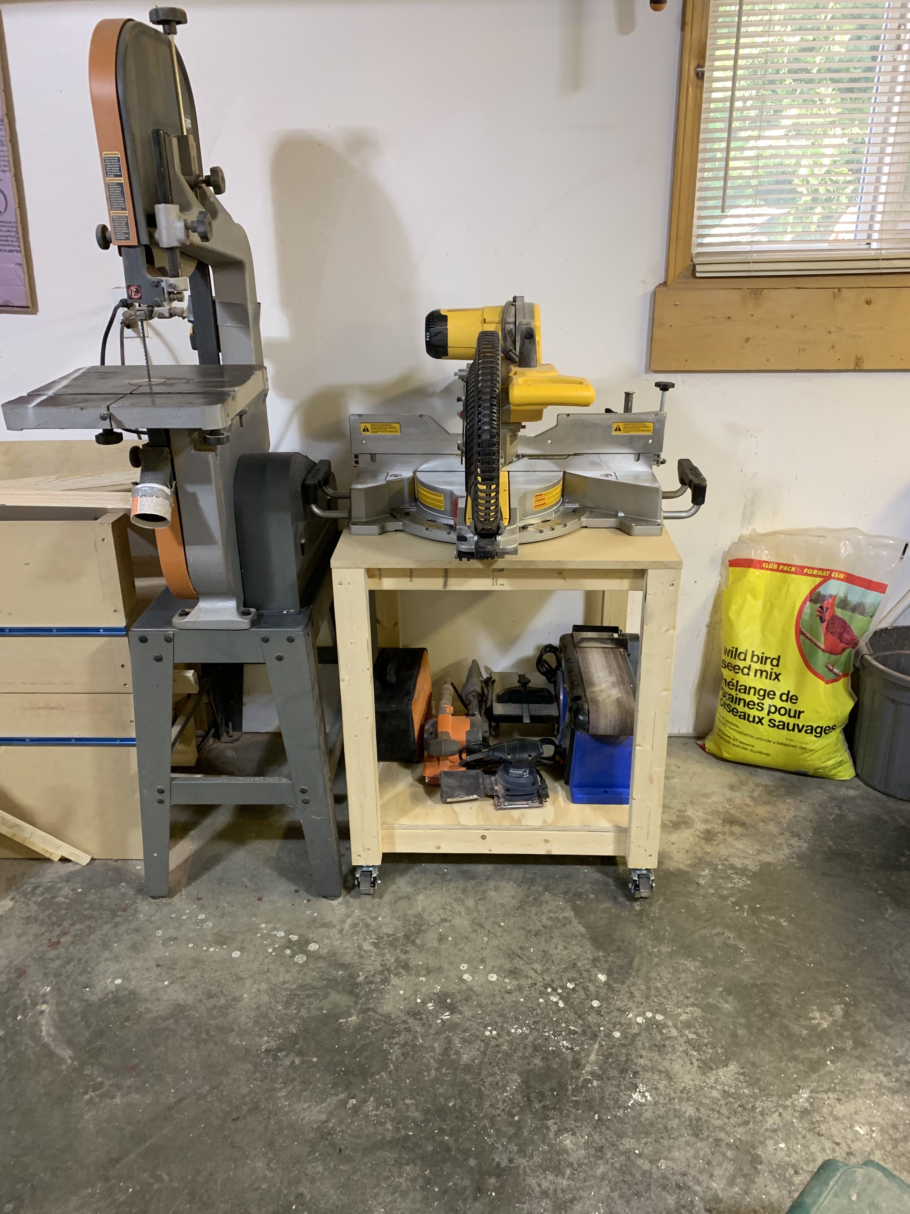 Tool stands. To help make things easier, I decided to build some tool stands for a few of my heavier tools that I regularly use. The stands are on casters, making it easier to move them around the shop so that I can utilize the open areas, ensuring I have the right amount of space to do the work I would like to do. They have been great stands for the last year, however I am already looking to upgrade them so that they have a flip-top, allowing me to have 2 tools on each stand. As I continue to add to my shop, I need more tools that are easily accessible. However, you decide to build these, one thing to consider it making sure that the top deck of the tool lines up with the top deck of your work bench. This allows you to use both at the same time, for added surface area. I chose to make mine all level with the top of my table saw as I plan to re-do my workbench in the future. This allows me to use the top deck of my table saw to support long pieces of wood when cutting on the mitre saw or using my planer. If you are interested in the plans that I used, you can see them in my post “Simple Moveable Tool Stands“. There is a full step-by-step instructions and supplies list.