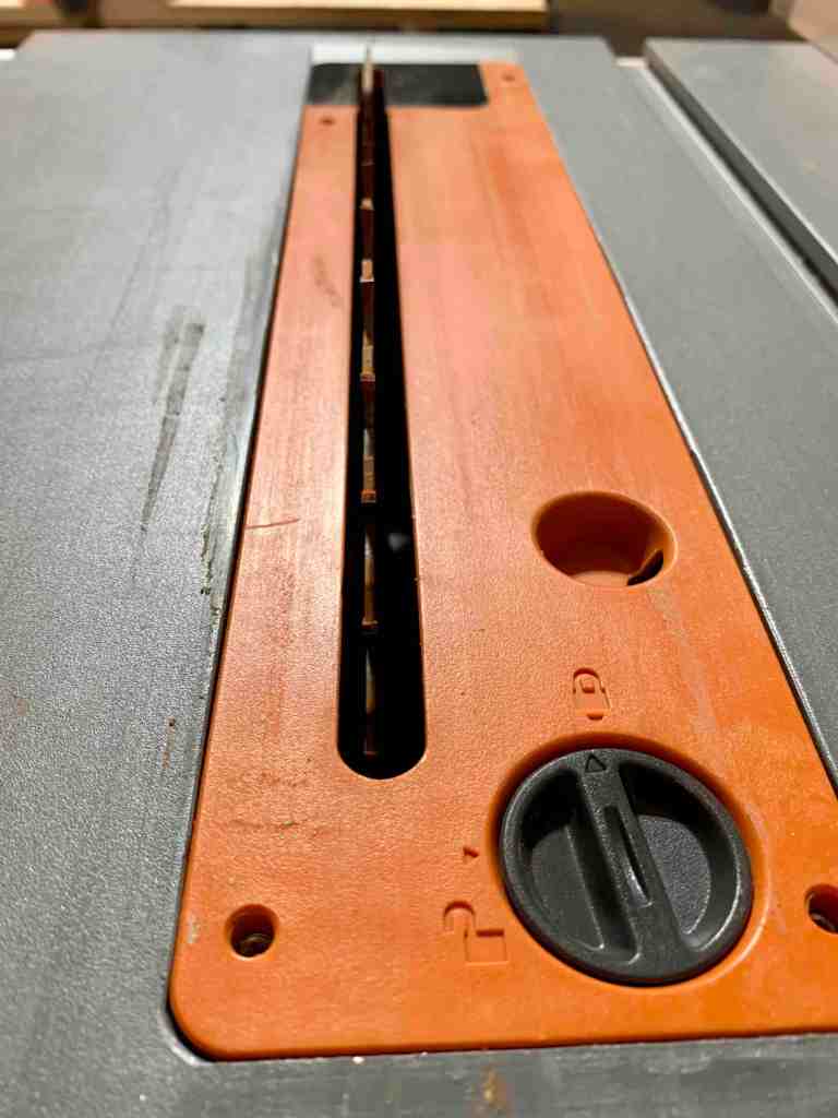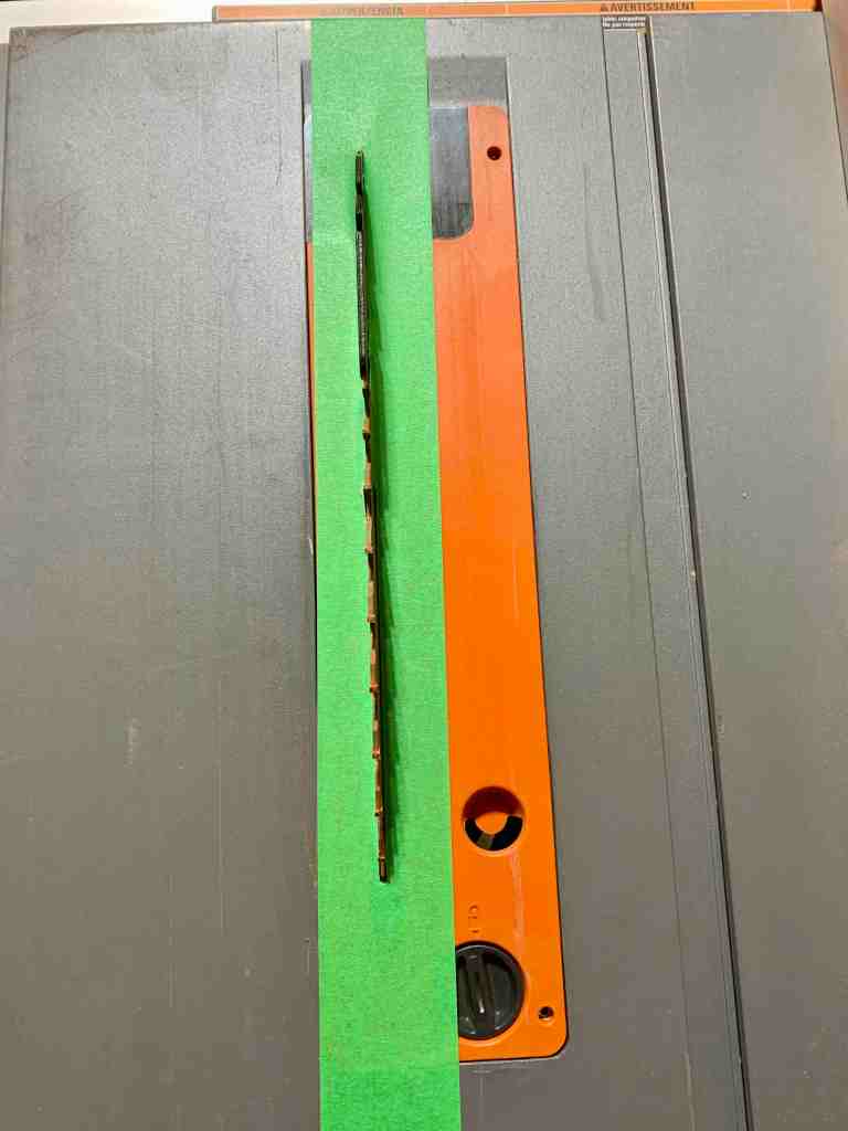 I have not yet purchased or made a zero clearance insert for my table saw. Often, I would like to only shave off a 1/8″ piece from the edges of the wood so that I have a nice smooth edge to work with. I saw one of the woodworkers on Instagram (I unfortunately cannot remember, otherwise I would note them here), use a strip of painters tape on their table saw. Using a thick piece, from end to end, raise the blade through the tape. The tape closes the gaps around the blade, allowing you to cut thin strips without it getting sucked down into the blade area. I have used this quite a bit, but would like to eventually get a proper zero clearance insert.