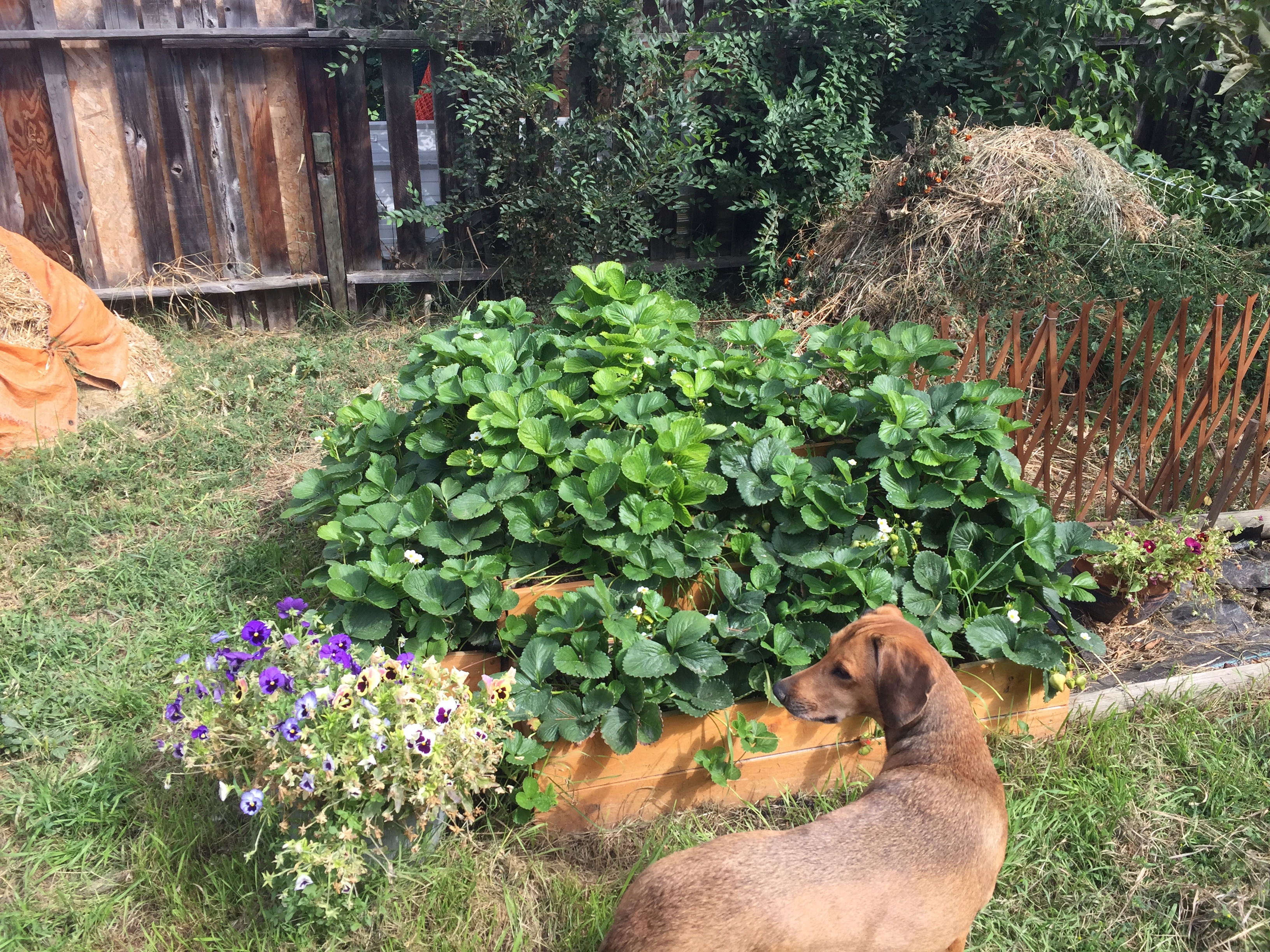 2019 – Status quo for the left side. Though we did have to build some netting around the strawberries as the magpies had found them and were not interested in leaving us any. Ellie & Basil also took their magpie evictions seriously and did their bit to make sure those birds stayed away.