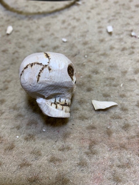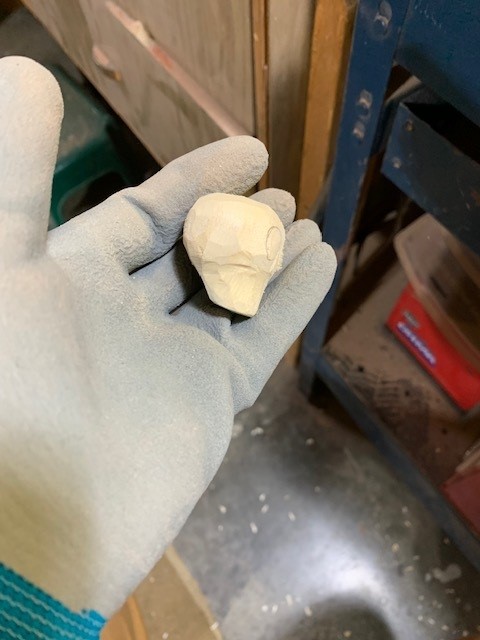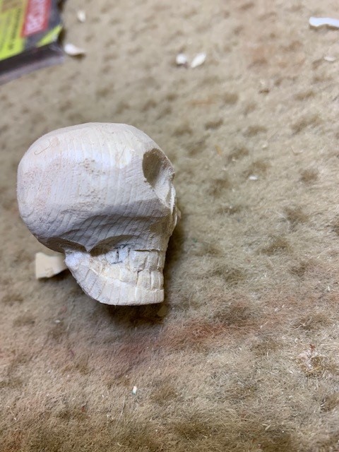 Now that I had that all sorted out it was time to make the skull. I have never carved a skull before so I looked it up on Pinterest to see if there were any tutorials. Nope. But I did find photos of other people skull carvings, which gave me something visual to work with. So I decided to just give it a whirl and see what happens.