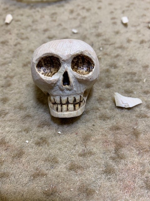 Because of the descriptions of the man-eating birds, I only felt it right to add a little extra to my Huxhukw bird. It needed a skull to crush in it’s beak. And because I carved everything else, I had to also carve the skull. I couldn’t put any ol’ skull in there, it had to be carved by me.