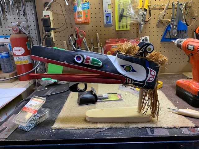 Voila! A skull for the beak of the huxhukw bird. Each step I was so worried that I would screw up and have to start over. But I took it very slow, making very small adjustments like my dad taught me, and it all worked out.