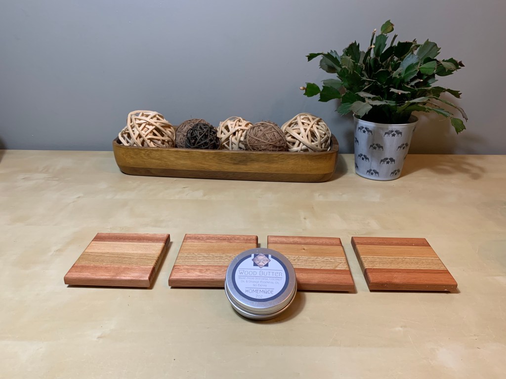 All in all they are a great starter project. I feel like some of these projects would have been better stepping stones to the original cutting boards I did, but apparently I prefer to start with the bigger projects first. With the coasters I am truly starting with the basics. I would like to do some more intricate designs which will result in a different process of building a block and then cutting each coaster from that block. The block will be the size that I want each coaster to be and I will cut it like a loaf of bread, with each slice being a coaster. I think that analogy works…Anyway, future plans.
