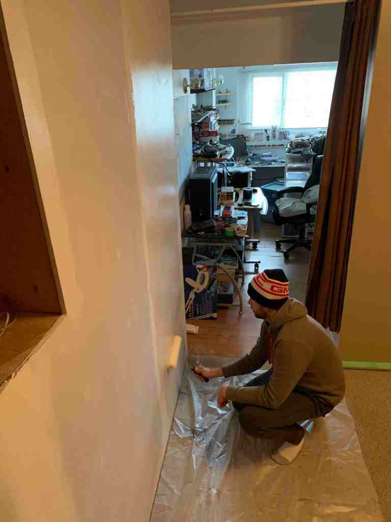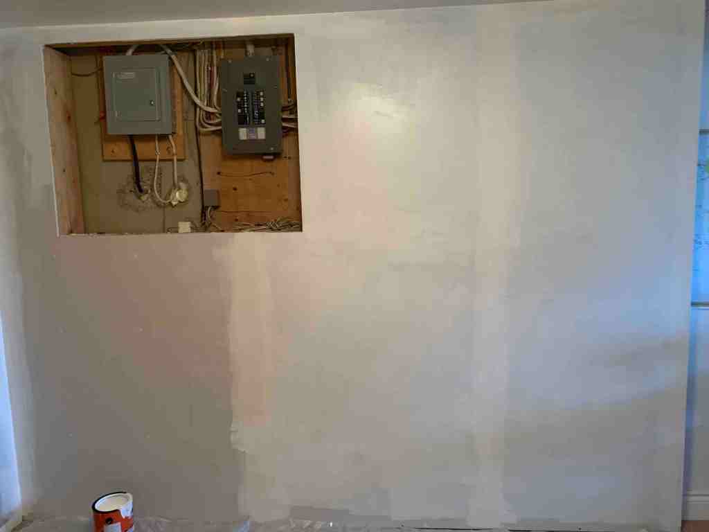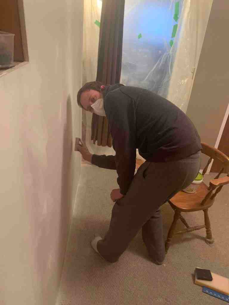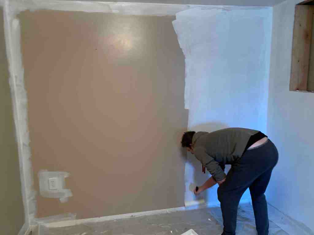 Kurt pulled out the vacuum since we had made quite the mess sanding. While he vacuumed up as much dust as he could, I grabbed a bowl and a large sponge so that we could wipe down all the walls before priming them. Kurt finished vacuuming and I got to work giving each wall a good wipe down, especially the newly drywalled wall. We let it sit overnight and gave it another wipe down the next day to ensure that there was no dust that came off on our hands when we ran them along the walls and the seams. We were good to go after 2 wipe downs.