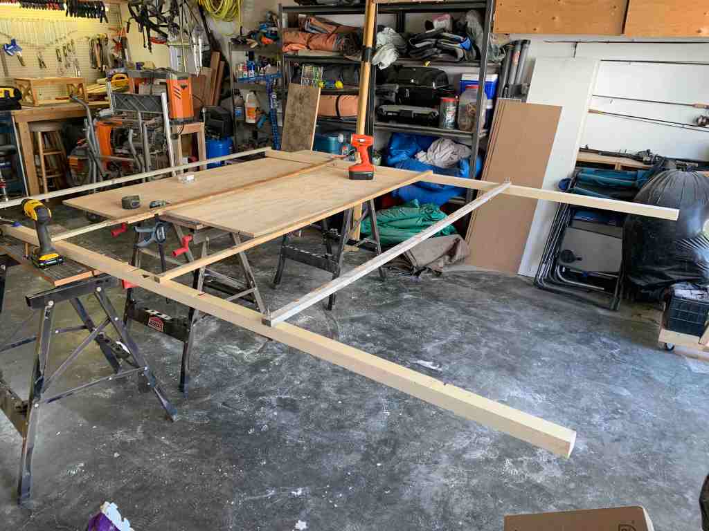 Once I had the uprights cut, it was just a matter of assembling since all the other pieces were already at the right lengths. They also conveniently already had screws pre-drilled into them from their last structure. Putting them together ended up going faster than I expected. Especially since I thought ahead and moved the boat out of the shop so that I could setup a table to do all the work on, helping save my back and knees. Had I not had the table, I would have been scooting around on the ground in the backyard to assemble the towers. Though, the final assembly, I did find easier to just do in the yard, so there was still some scooting done.