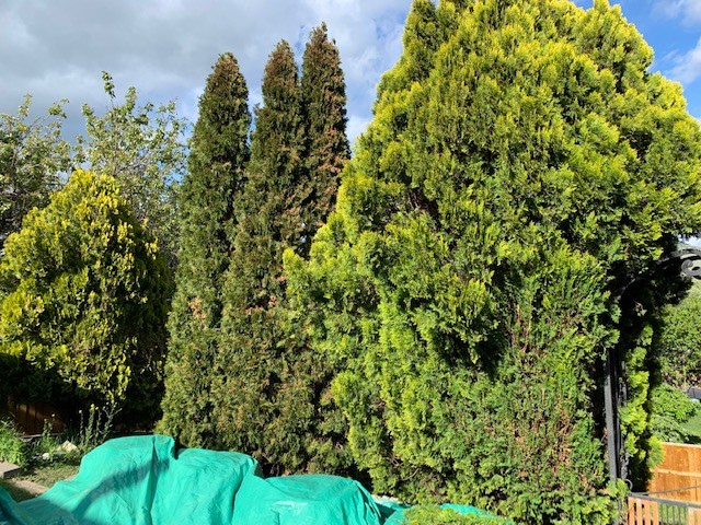 The trees needed a serious trim. I didn’t get a chance to do them last year because the heat hit to fast, and I didn’t want to disturb them. I would have liked to trim them back further, but as you can see, I was getting into the hollow centre of them, and didn’t want that. If you look at the pre-trim pictures above, you will notice the neon green of them, which is all new growth, so hopefully the few patchy areas will fill in quickly.