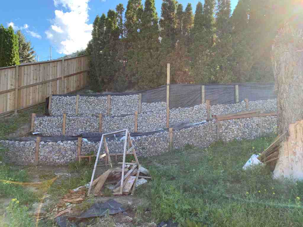 We have blown through our rock pile very quickly once we got filling the new wall. I quickly called our go-to landscaping company to schedule another load to be delivered before the weekend and luck would have it that they could get us some on Friday. Perfect! We could do a section on Friday and finish off the last couple sections over the weekend. We have been on a good momentum finishing about a section and a half each night, which is the equivalent of 2 loads of rocks in our new cart. So we wanted to keep it up while we still have some cooler weather.