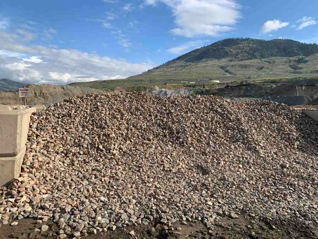 So, Saturday morning, I grabbed a little bucket and made sure to grab a variety of the colours from the dregs of our current rock pile. I headed off to the rock place to see what we could come up with. As with our summer so far, it had rained overnight, which changed the look of some of the rock piles. With my sample bucket in hand, I could immediately tell that the Arizona Shale was definitely too orange. Though there was some grey, there wasn’t enough to match. I headed over to the Lafarge Limestone and at first glance thought it was still to grey/white, but then I noticed that the area towards the front of the pile had been washed down pretty well from the rain. I matched some of the rocks to that and it was a pretty good match. Not exact, but definitely close enough that I hope we don’t really notice the difference.