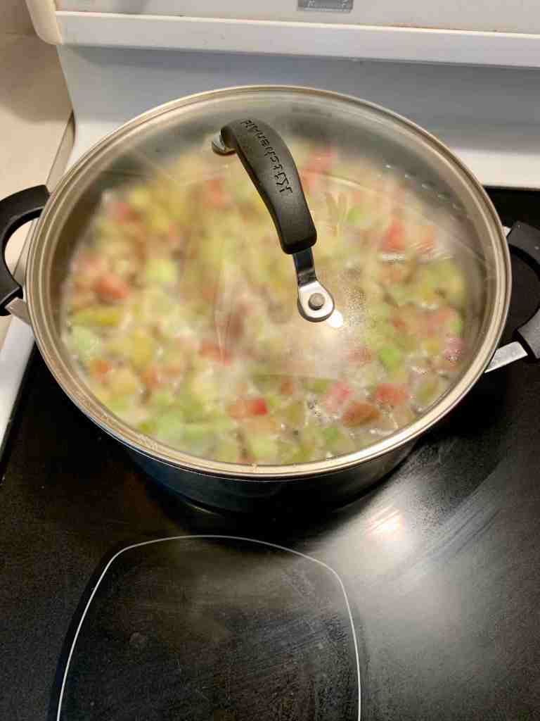 Once it has come to a gentle boil, reduce heat to low, add a lid and let simmer for 45 minutes to an hour.