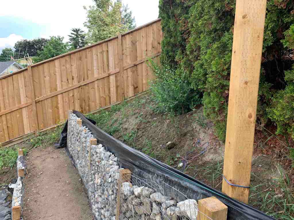 Part 3 of the wall, is going from where we ended toward the centre of the yard, and continuing the fence up the hill so that the cedars have full edging. This shorter wall will meet up with the arch we have, and eventually a set of stairs will come down there. It will likely get shorter and shorter as it approaches the top of the yard. We will also need to cut in a drainage hole, where our garage drain comes out. Shouldn’t be too much of a problem to work around that.