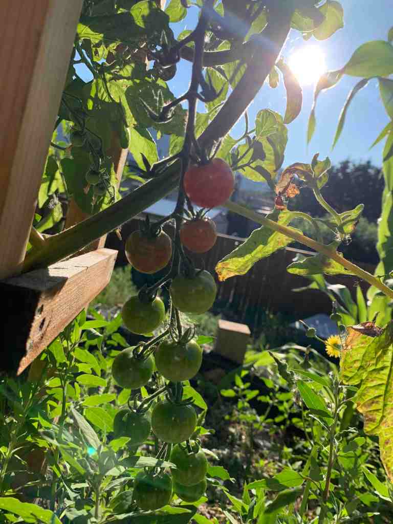 The pepper plants themselves are not looking overly happy but are producing well. I put them out into the yard later than last year due to the cold weather, but I think that the weather just hasn’t been in their favour for happiness. I won’t complain though, they are producing and the peppers are delicious and crisp.