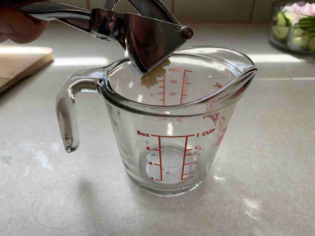 - In a bowl, start by crushing the garlic, catching any liquids.