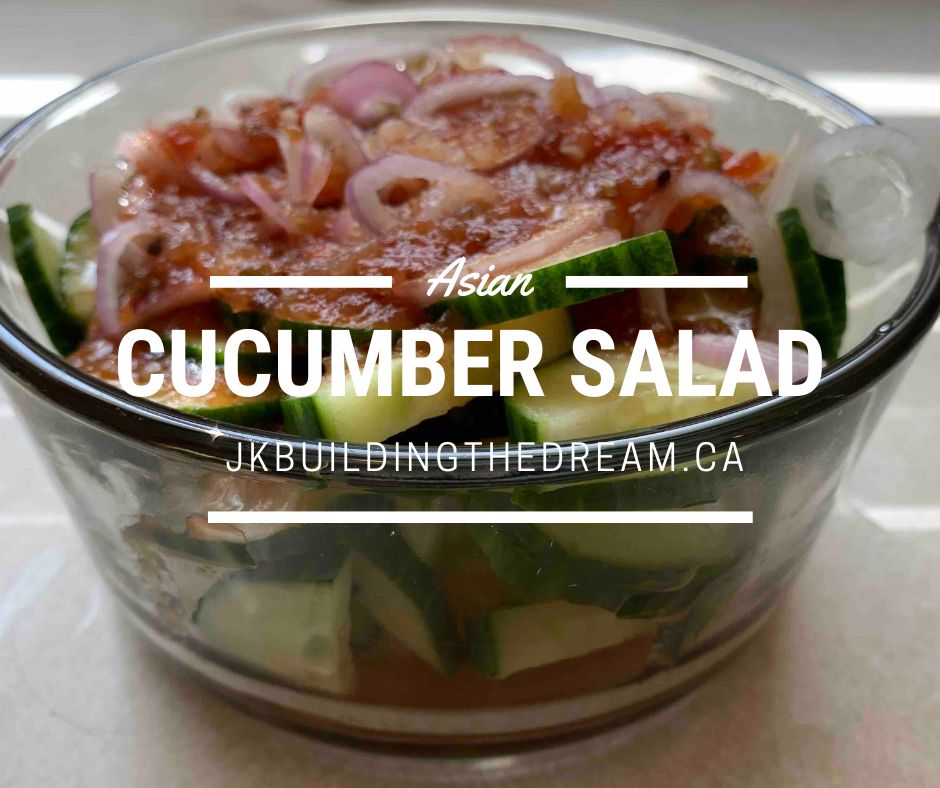 Summertime we find that most of our meals focus on a salad and protein, usually BBQ’d. I was getting bored of the proteins and salads we had been having and found a Tandoori marinade at the grocery store. I decided that some BBQ’d tandoori chicken sounded delightful! So, I bought the marinade and had to come up with a salad to go with it. A cucumber salad was most often featured, but I couldn’t decide which one I liked, so I blended a few into a salad that I thought would fit nicely. It was so refreshing!