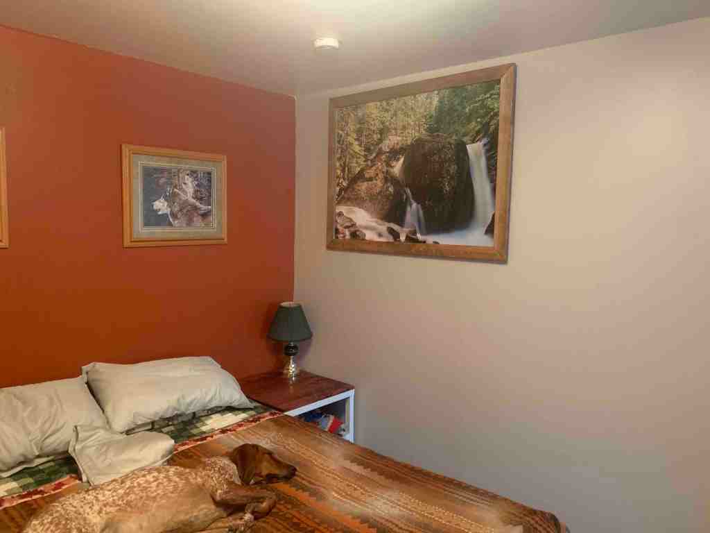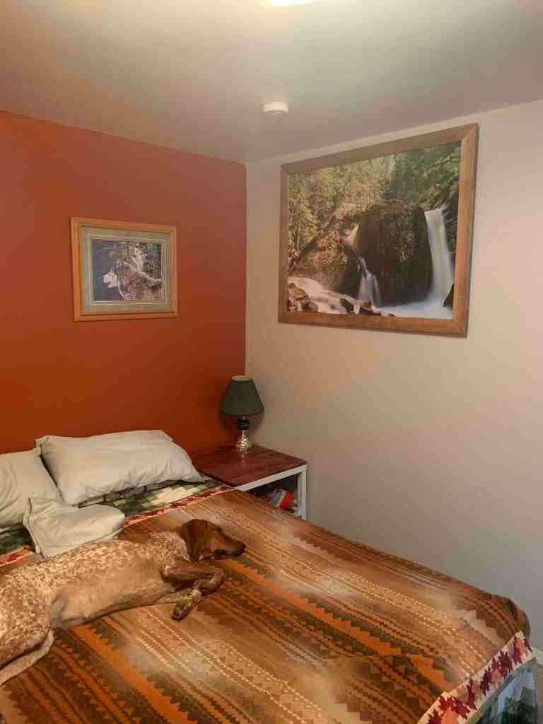 It is now August, and we have finally gotten around to finishing up that smaller access hole for the breaker boxes. We had debated a few ideas such as wooden doors, cabinet doors or a sliding door, but we didn’t like any of them. I kind of wanted it hidden so that the hole is covered in a seamless way, so the guest doesn’t even know there is an area there. So we decided on a picture.