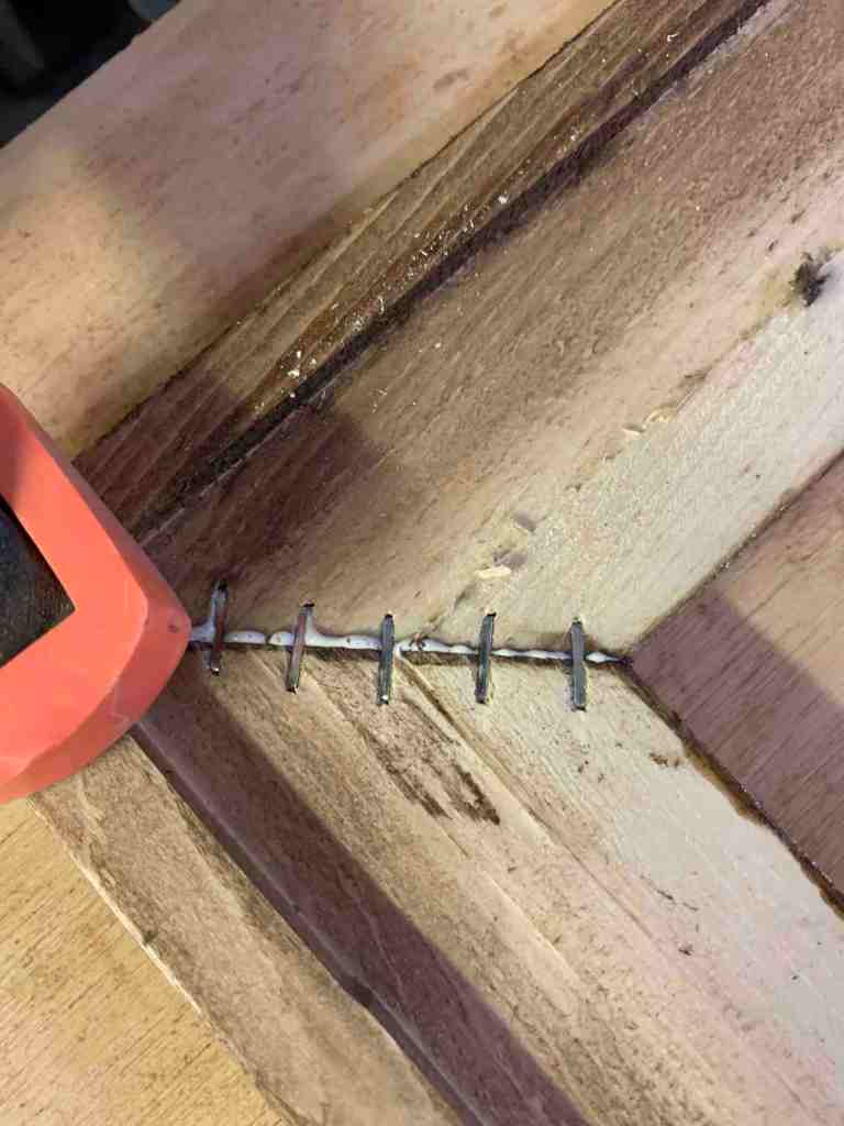 From there I laid it out on my makeshift table, and glued all the corners together. Once again, I didn’t have the nice framing corner staple machine that my dad did in his frame shop, so I used a standard staple gun and stapled the glued corners for extra strength. Then I clamped everything down for a nice flat cure.