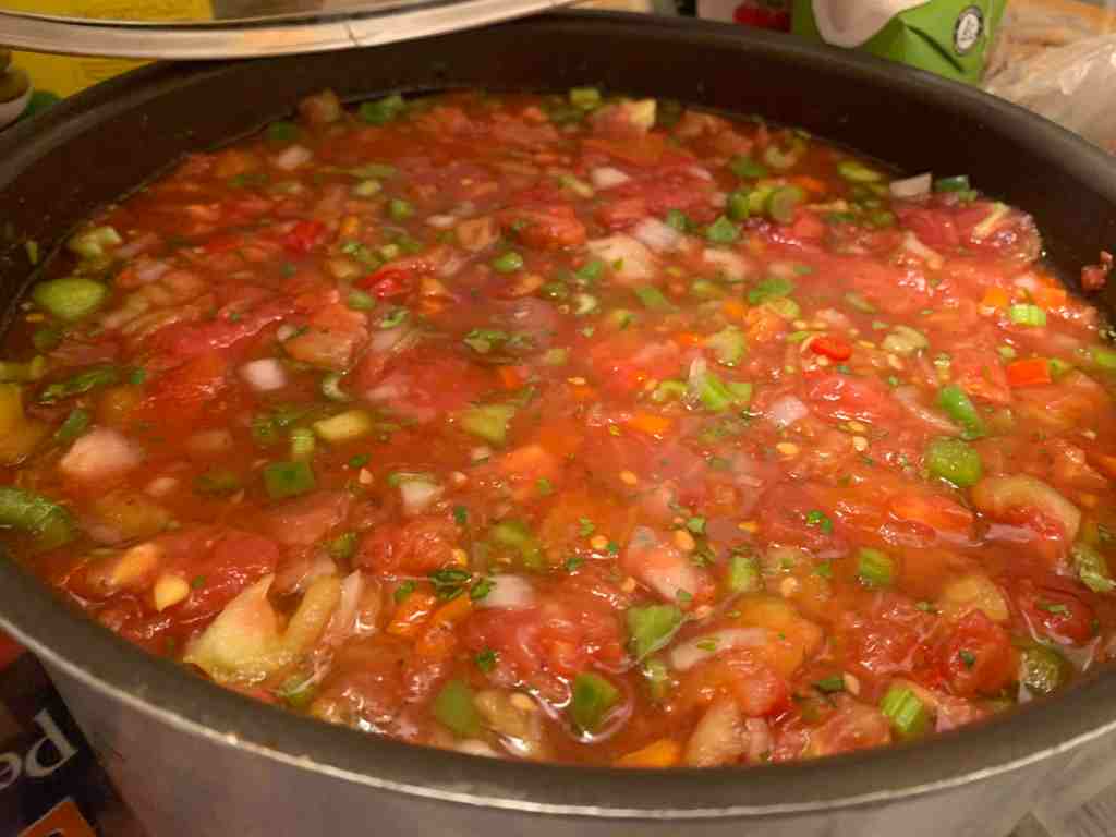 - 9-10 cups fresh tomatoes diced (I used romas & big beef tomato mixture)