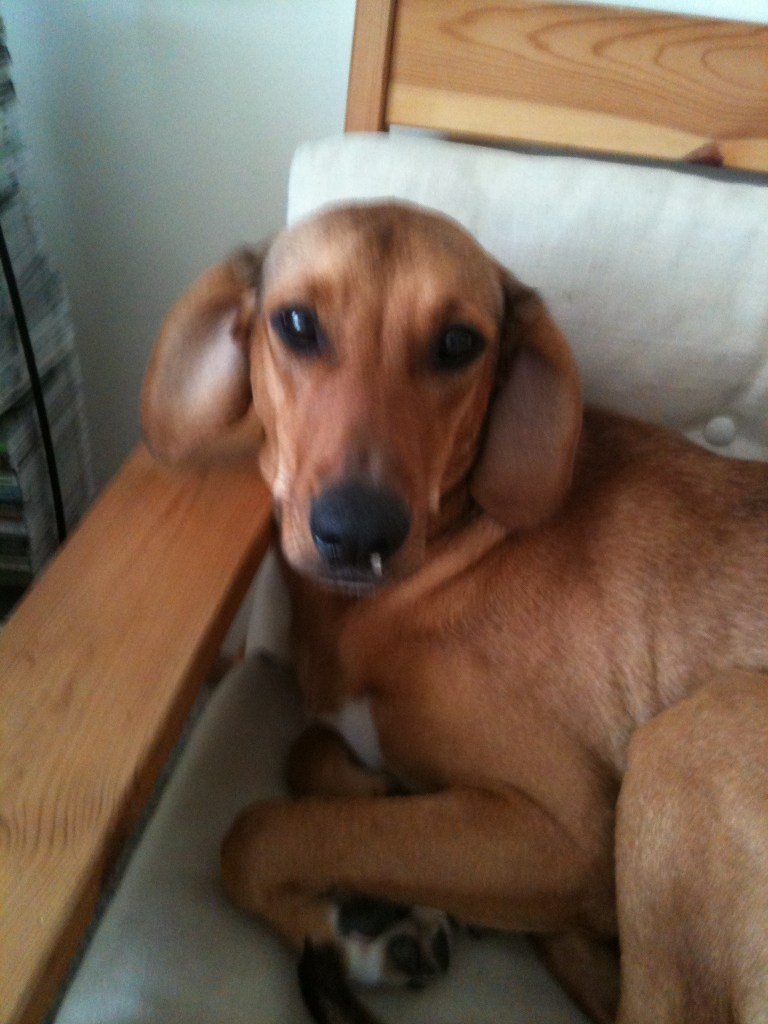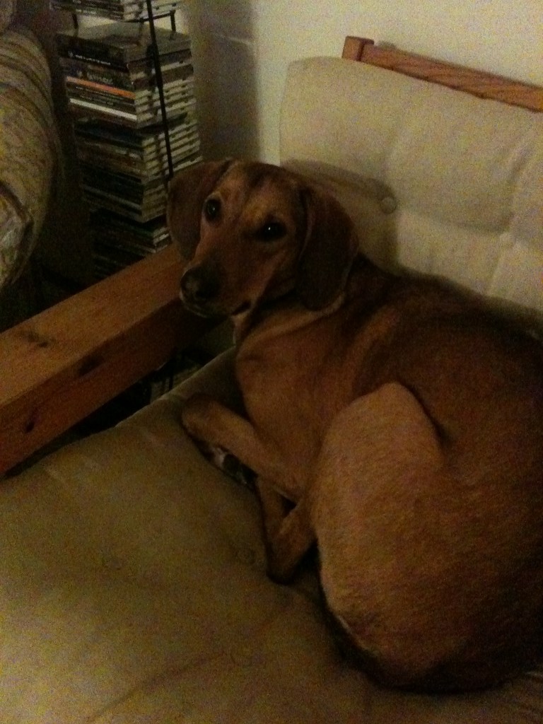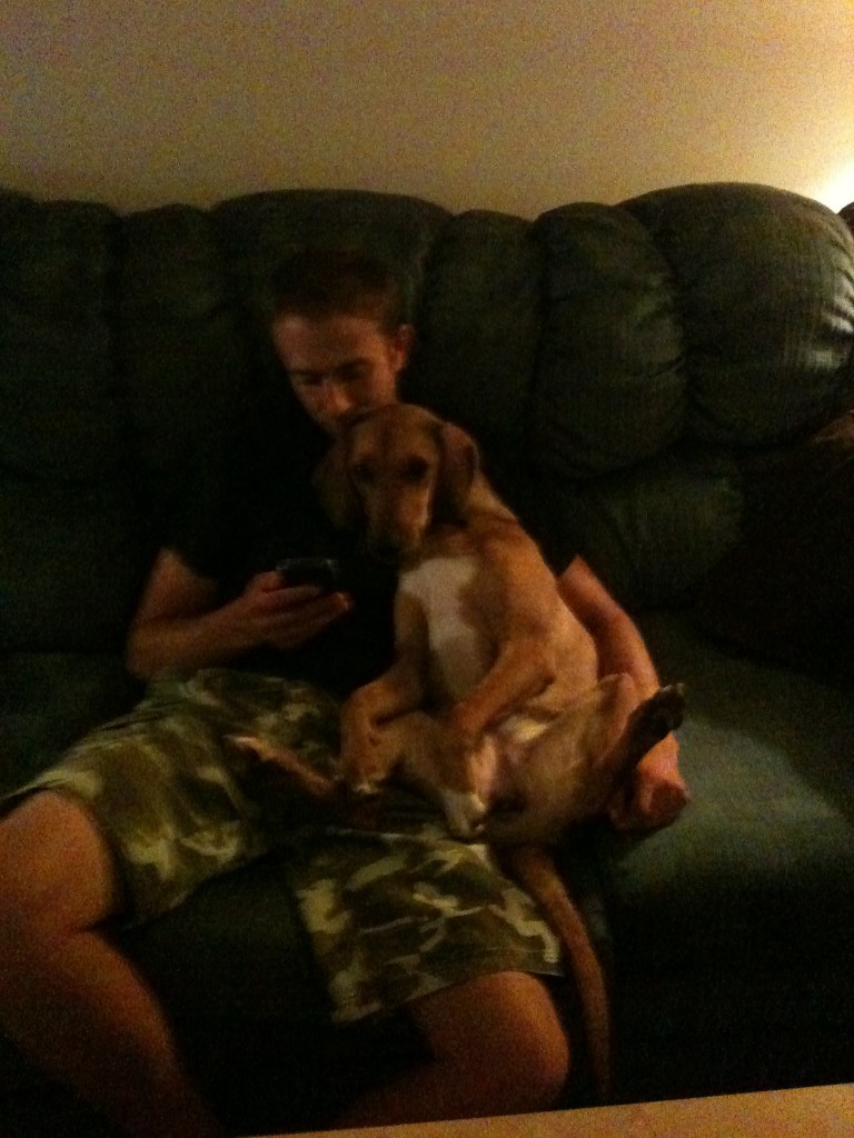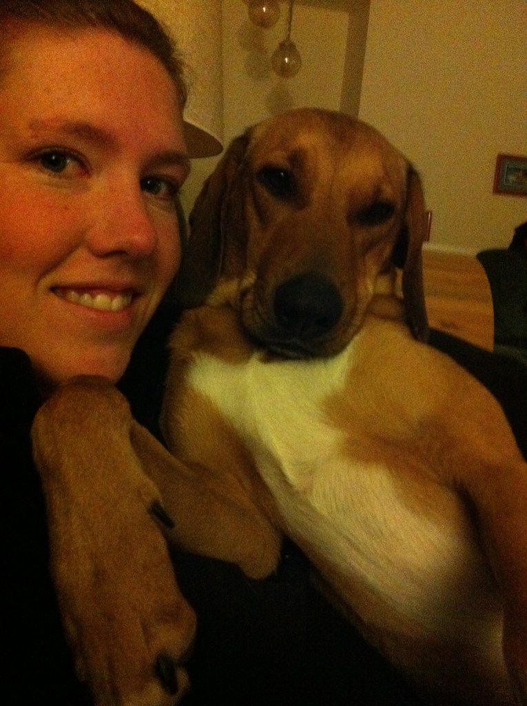 I remember asking what she was crossed with because she didn’t quite have that beagle look. They told me Rhodesian Ridgeback. I had no idea what type of dog that was, and was so smitten with her, that I didn’t bother looking into it. I found out when I got home that they are a very large breed and she was going to end up being way larger than was allowed in the townhouse that I was living in. It was only going to be a matter of a few months and she was going to be too big to be allowed where I was living. Kurt and I had already been discussing moving in together so thanks to Ellie, it was time for Kurt and I to make the move and find a place that would allow a bigger dog.