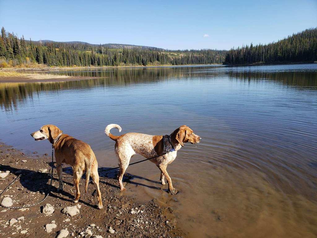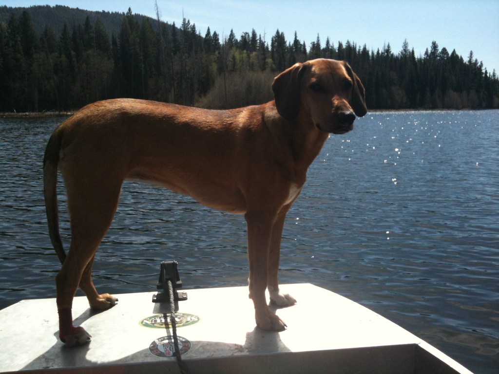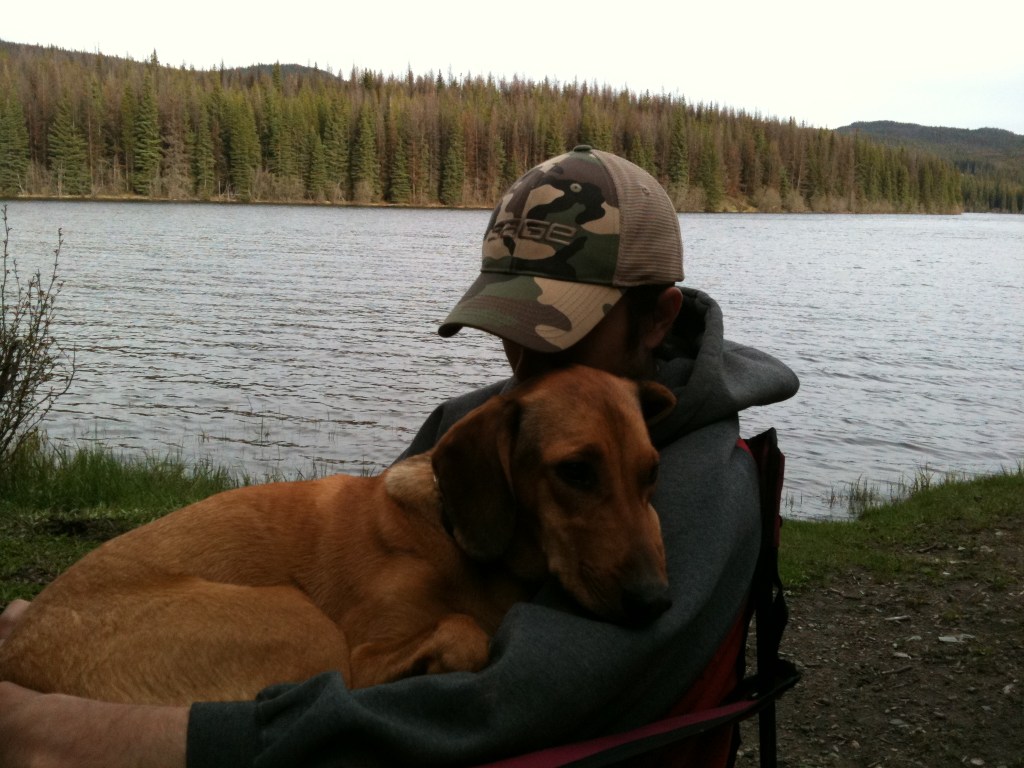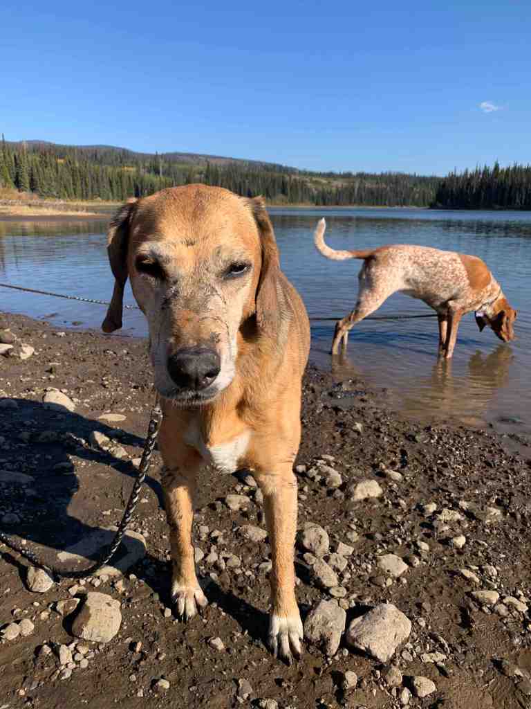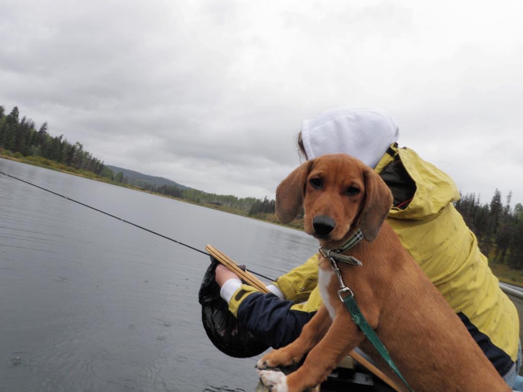 Shortly after we got Ellie, we introduced her to fishing, which she loved. In fact, in those early years, she did more fishing than I did and was Kurt’s fishing buddy for all her years with us. She loved to sit on the bulkhead at the front of the boat and watch the lake, the other fishermen and any wildlife around. Either that or she wanted to nap right on Kurts fishing line. Ellie and Kurt formed quite the bond through hours sitting in the fishing boat. While he unloaded the boat at our favourite lake, Ellie would go and explore a gopher metropolis, snooting her nose down any hole she could find. While fishing, she would get excited and run about when she knew we had a fish on, which was somewhat challenging considering it isn’t the largest boat. As she got older, she learned to chill and that we would give her a sniff of the fish before releasing them.