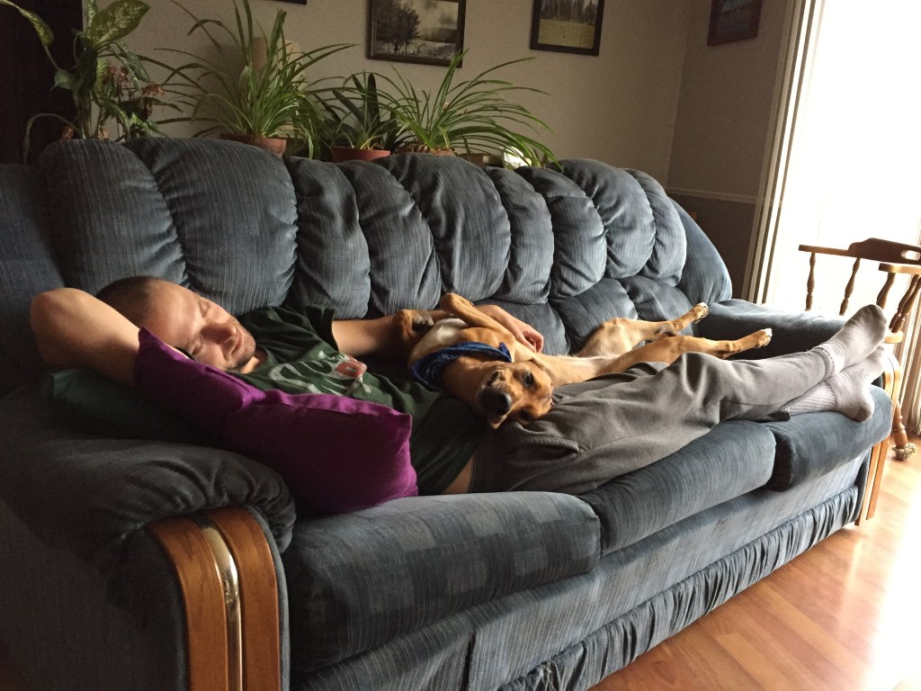 Ellie as not always the most affectionate dog. Most of her life she didn’t have to seek affection but instead often got smothered in love. Not until we got Basil. Basil is an affection hog and demands love and cuddles all the time. It was easy to give Basil love, while also still trying to give Ellie the love we know she wanted but refused to act like she did. Well, last year, after her bacterial infection, we noticed a huge change in Ellie. She regularly came in for hugs and cuddles and wanted all that affection that we used to pile on her. It was a nice change to have her coming to us regularly for that love and hanging around long enough to give some love back.