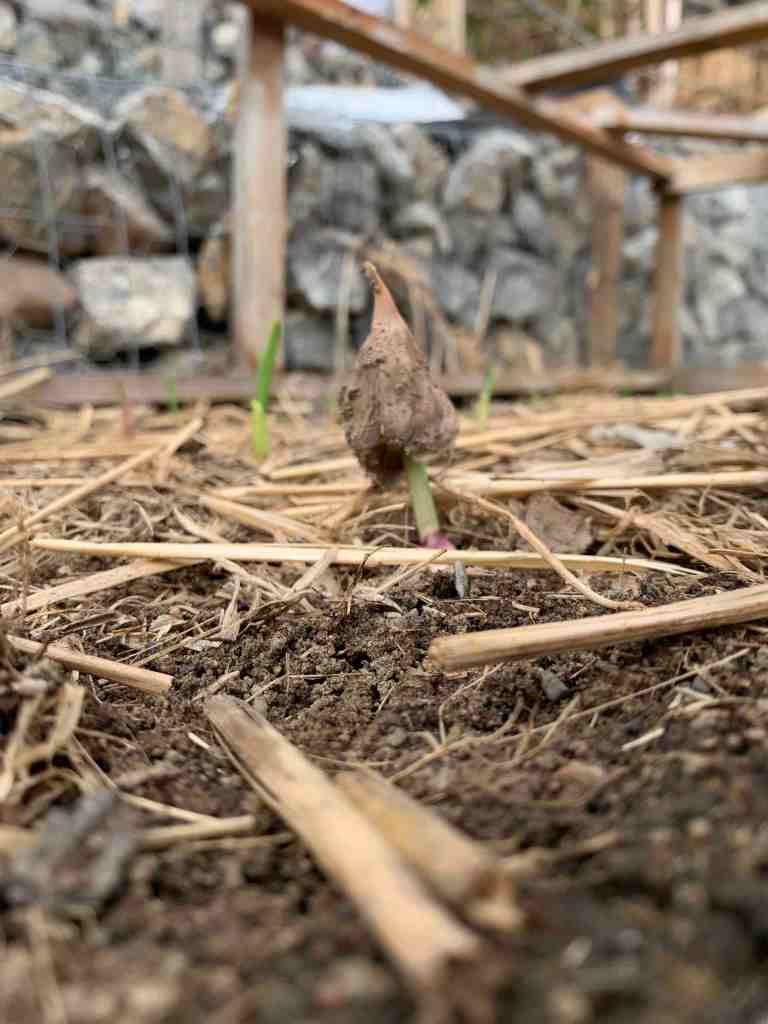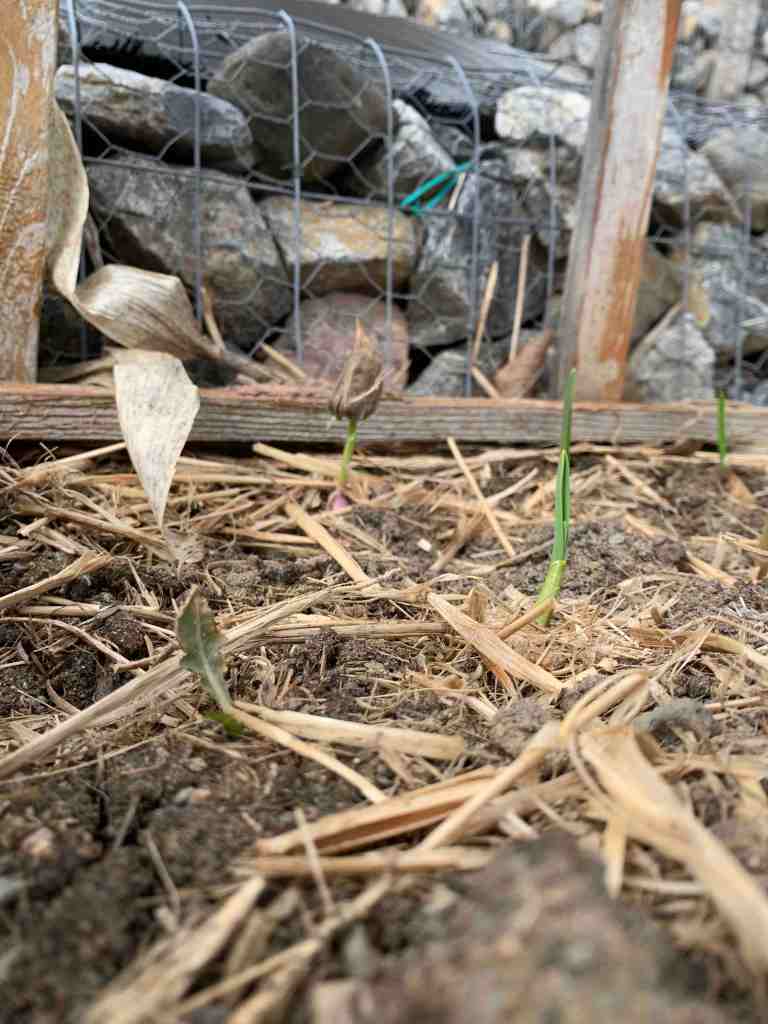 While pulling everything we took a little peek at all our plants growing. The garlics are happily growing, though some had cute little husk hats that we had to remove. The rhubarb is poking through and showing their bright red bulb packed leaves. The tarragon is growing in nicely in the herb planter. The driveway strawberries are starting to show out some new leaves. And while rooting around in our planter, we realized that one of the flowers we planted is actually a perennial not an annual. The Asiatic lilies that we had in the air conditioner planters have happy little bulbs just below the surface. Although I wasn’t a huge fan of these because I prefer lilies that have multiple flowerings throughout the summer, it was still a pretty flower so we left the bulbs be and will welcome back some plants.